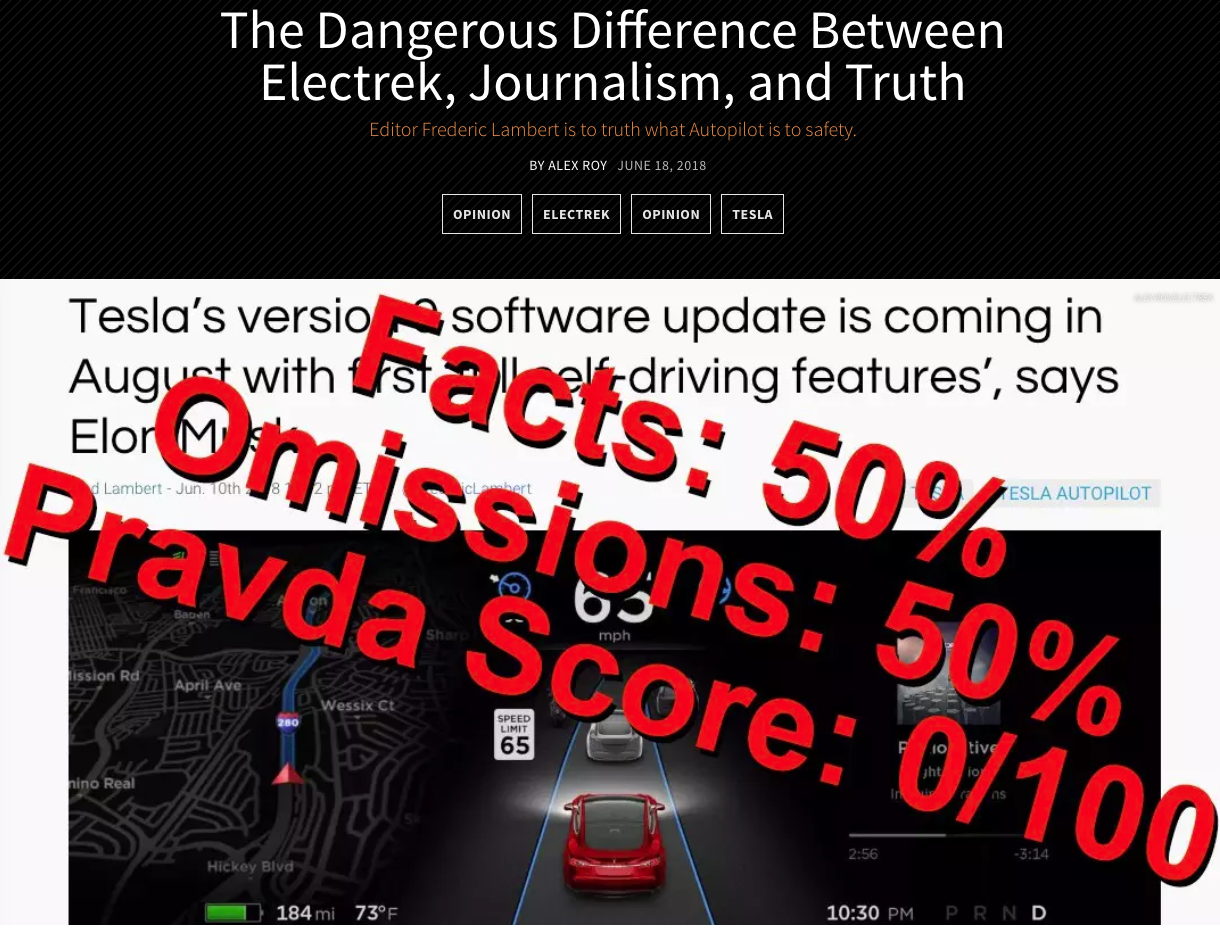 , Whatever Electrek is, it’s suboptimal., TheDrive.com2. Electrek & The Tesla Fanbois — I really want Tesla to succeed on the merits of everything good Elon Musk has done for the automotive industry. Better ADAS, semi-automation, connectivity, EV powertrains, fast charging, literally everything that’s coming from the OEMs is coming sooner because Tesla forced their hands. Is Tesla perfect? No. But automotive history is chock full of scandals, liars and charlatans, and Tesla continues to shock, surprise and delight more than it disappoints, 100% of which is Elon Musk’s work…and fault.