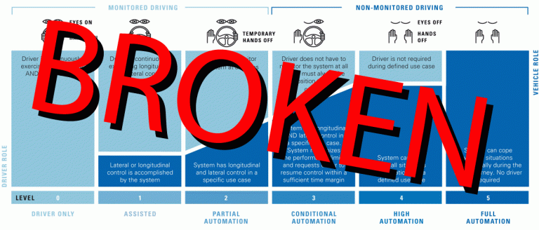 I’m no Ayrton Senna, and never claimed to be. But I always thought I was “safe”, if not way better than the average driver. That may be true, but I still hit that pillar. In that moment, driving a popular crossover, in conditions similar to what millions around the world experience every day, I failed. I was lucky there wasn’t child instead of that pillar. There’s no excuse for it. But there are two good answers. We need better systems to help humans control machines where machines are incapable of taking full control. That’s called parallel automation, and it’s what you find in an Airbus, and where Toyota is trying to go with their Guardian systems. We should also embrace safety when and where we can, as long as it augments human freedom rather than limits it. That’s L4 automation, and it can’t be deployed until we — all of us — agree on what “safe” means. The self-driving sector has a lot of work to do, but so do humans.