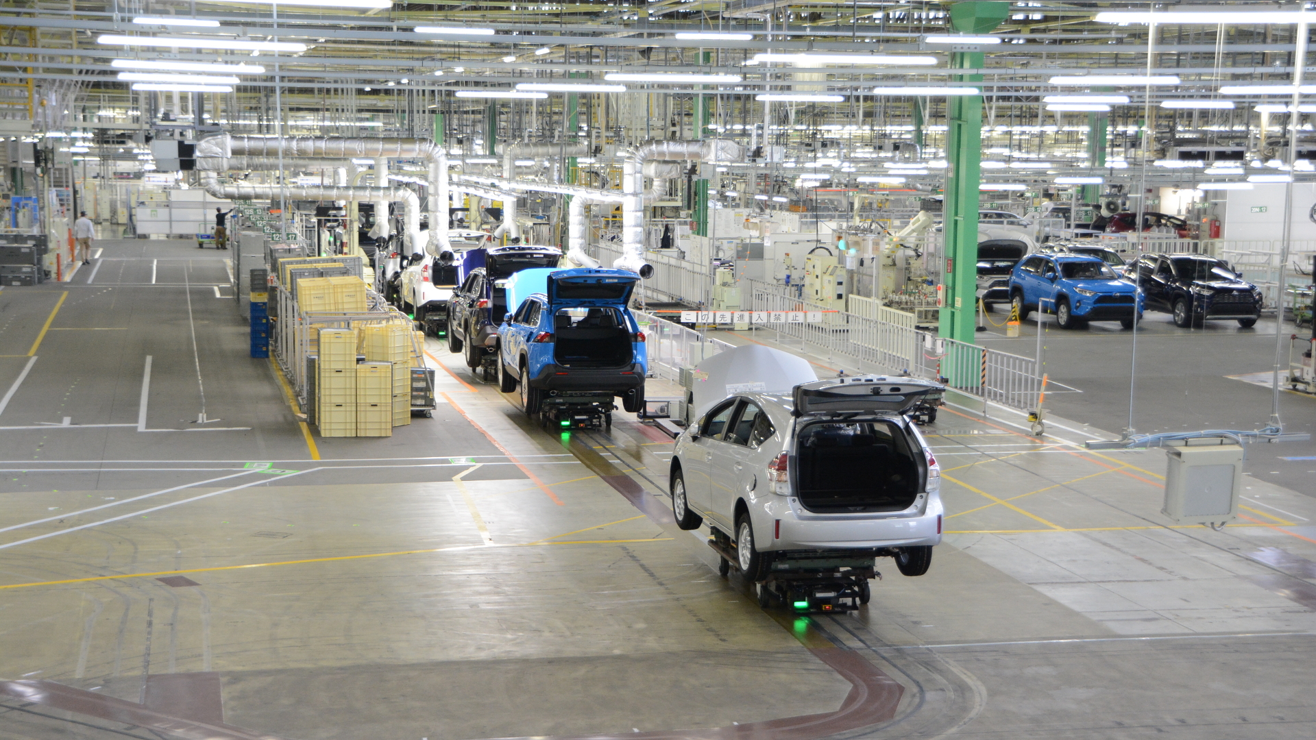 Our first stop in Toyota City, the company’s headquarters and manufacturing complex on the outskirts of Nagoya, was the Takaoka plant. Built in 1966 for the first-ever Corolla, Takaoka is now equipped with two main assembly lines: #1, a traditional “volume” line building 903 RAV-4 and Harrier (Lexus RX) crossovers per day and #2, a newer reconfigurable “flex” line building 617 RAV-4s, Prius, Prius C and Prius V vehicles per day.
