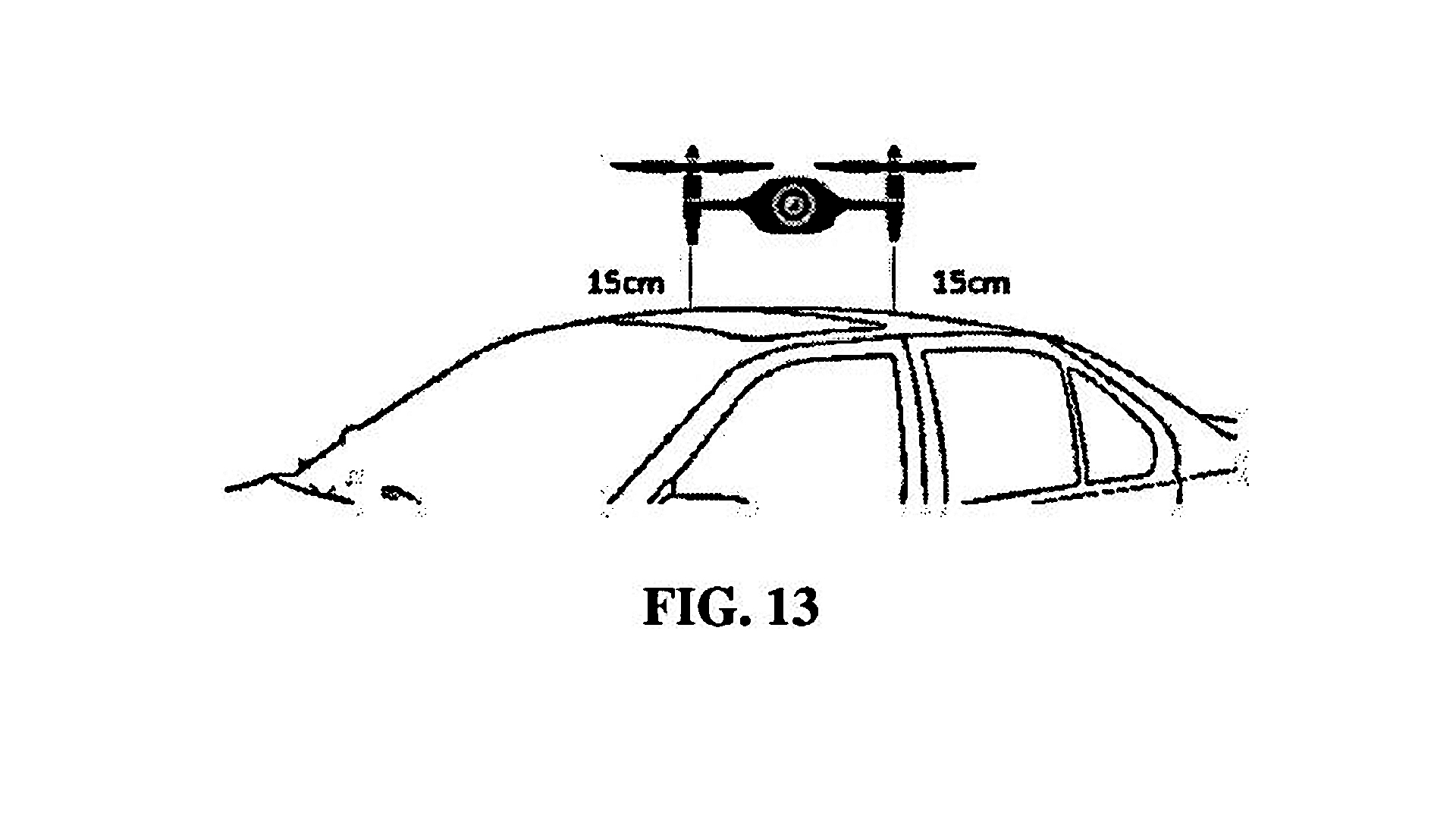 This new application envisions an automated system by which an unmanned aerial drone can be reserved or summoned to automatically wash a car. The drone would be able to recognize the target vehicle, determine that all windows and doors are closed and send an alert if they are not, detect the level of dirt, remove any objects that prevent cleaning as well as take before and after photos to be sent to the customer. The washing process would involve pre-washing, washing, drying and waxing, although the patent application does not specify details for how the washing would take place. The drone could be located in the vehicle it would clean, essentially making it a self-cleaning vehicle, or it could be placed in another vehicle that would act as a home base for drones that clean other vehicles.
