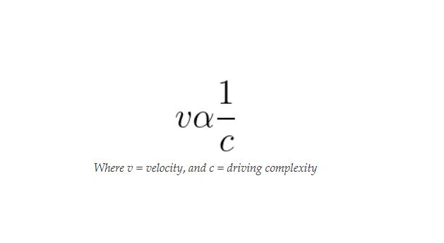 Which brings us to the Bonneville Salt Flats, and Rollie Free. At the salt flats, there are no buildings, there is no traffic, there are no merging lane lines. It is an environment without complexity. Rollie Free opted to set his motorcycle land speed record on the Bonneville Salt Flats because of the same fundamental law of driving that we mentioned before: Environmental complexity is inversely proportional to driving speed.