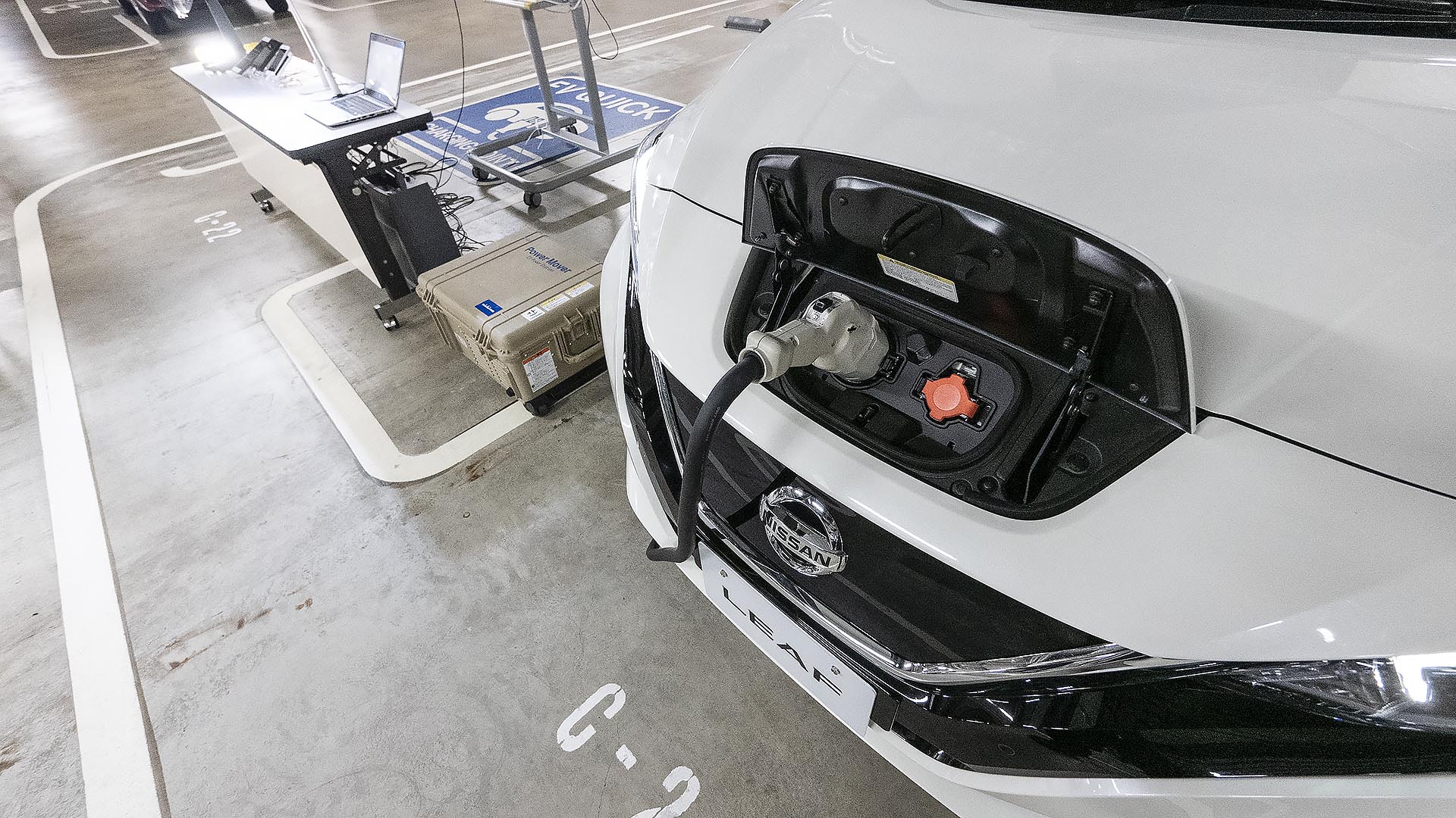 In observance of Disaster Prevention Day, I talked today with Kiho Ohga, General Manager in charge (get it?) of Nissan. She even laid on a V2H LEAF in the basement garage of the Nissan’s Yokohama HQ, to show you how it’s done. To send power back to the house, the electricity is run through a special charger that can go both ways, house to vehicle, and vehicle to house. Nissan also sells (for around $6,000) a portable unit, a Pelican case the size of a small suitcase that allows the LEAF to bring electricity to where it is needed the most. For that, Nissan cooperates with communities across the country to make V2H EVs available quickly when disaster strikes. “In an average house, a LEAF can keep the lights, and the A/C on for two to four days,” Ohga told me. Parked next to a convenience store, the LEAF can keep the fridge and the cash register going during a power outage. A LEAF in the basement garage of a tall building is good for 100 elevator trips.