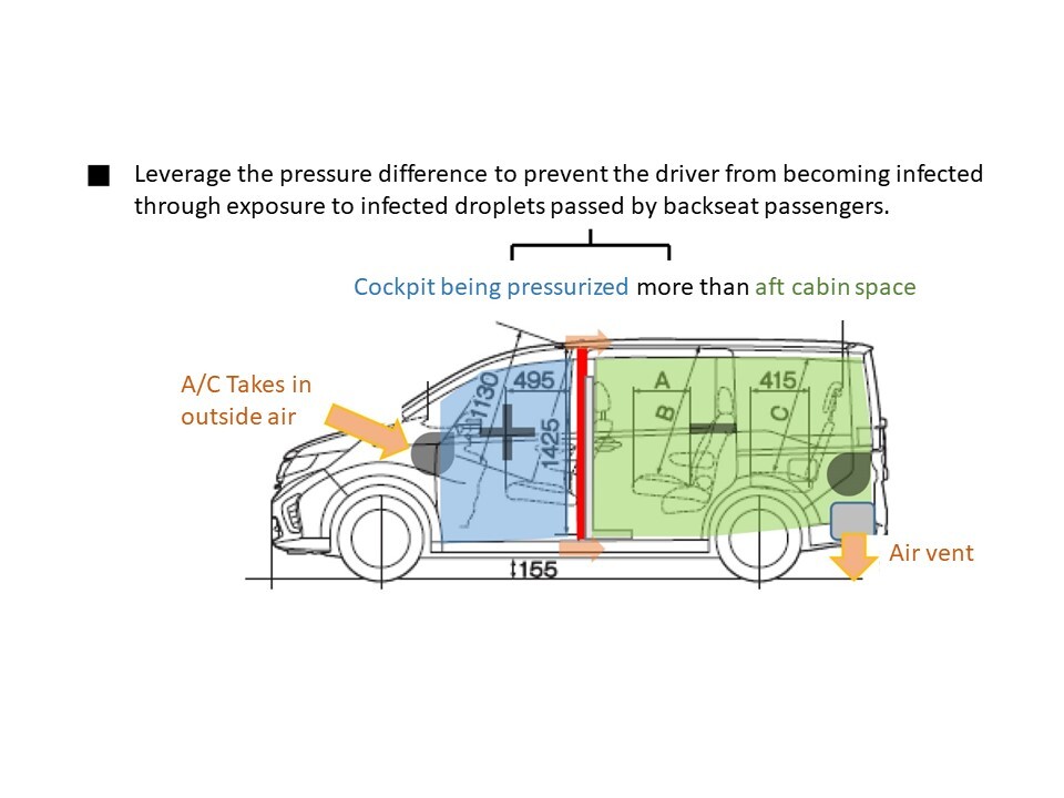 This is how Honda did it: the vans’ HVAC system was modified to create two distinct and fully independent zones within the cabin. Up front, the driver and front passenger sit in a pressurized area, where the air conditioning unit draws in air from the outside and gets filtered for that section of the vehicle only. To separate the two zones, Honda engineers added a partition to seal off airflow between the front and rear. The rear portion of the vehicle is pressurized to a lower level, which creates airflow from the front to the rear of the van. Air reaches the rear area through channels in the floor and in the headliner. Then, a new vent was added near the rear bumper to remove air from the vehicle without it recirculating through the cabin like it would on a normal van.