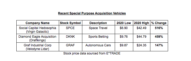 And we are now in a market that is foaming at the mouth for everything SPAC. This most recent surge was sparked by the enormous SPAC successes of Draftkings and Virgin Galactic, whose shares each soared more than 400 percent from their IPO prices.