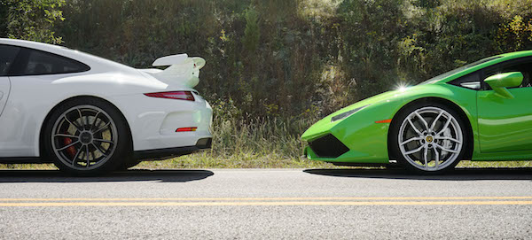 We shot 4K GoPro clips in the hills outside New York City, all the while enjoying some of CCC’s finest wares—a Porsche 911 GT3, Lamborghini Huracán, BMW i8 and McLaren MP4-12C. After properly wringing out the cars to fill our memory cards, our convoy turned south back towards Manhattan. Within minutes of hitting the highway, Feess had connected to my GoPro and pinched a few clips, edited a quick cut, and turned out out a 15-second video. Full quality, read to post. Boom.