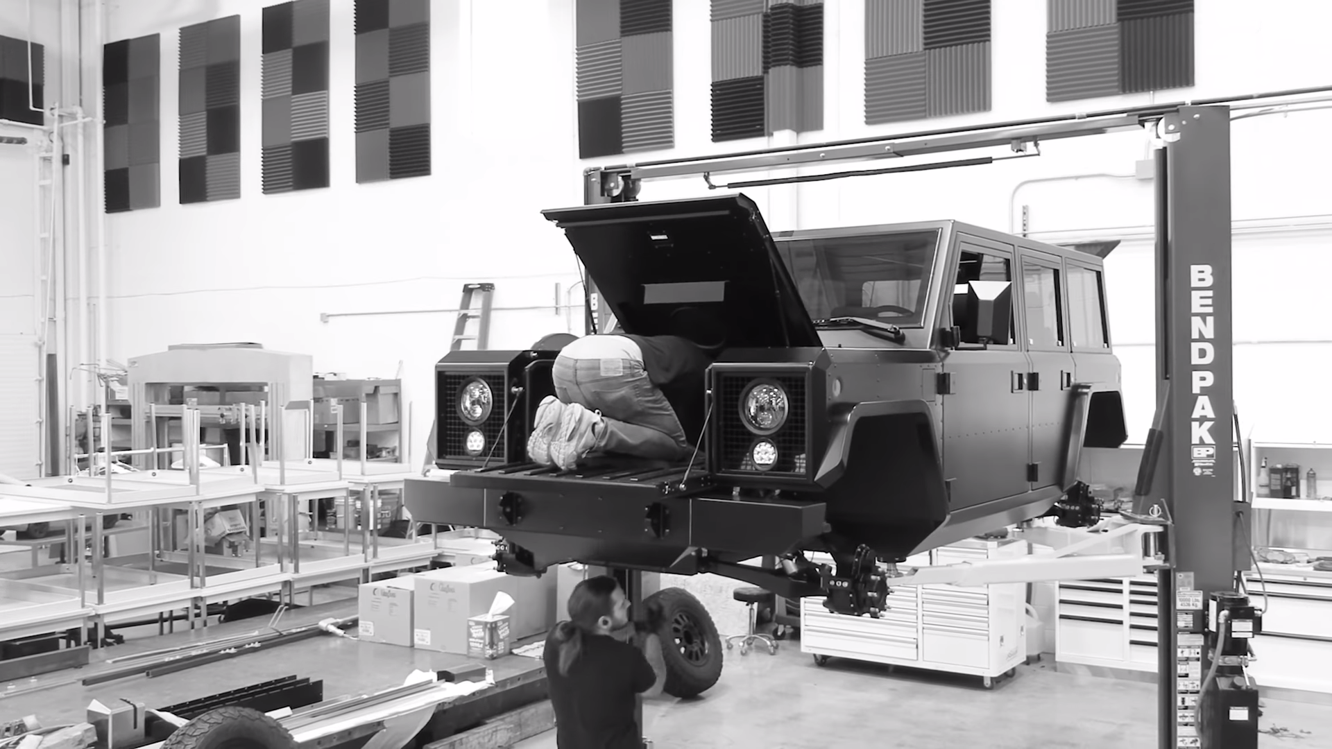 This late into 2020, the team has already built several B1 and B2 prototypes. Some of these have been driven around the parking lot, while inside, the high-voltage crew is busy finalizing their batteries for series production. Back in September, Bollinger was making packs for structural and vibration testing, only to now reveal how its battery box uses I-beams with integrated cooling channels, which reduce size and weight while improving reliability.