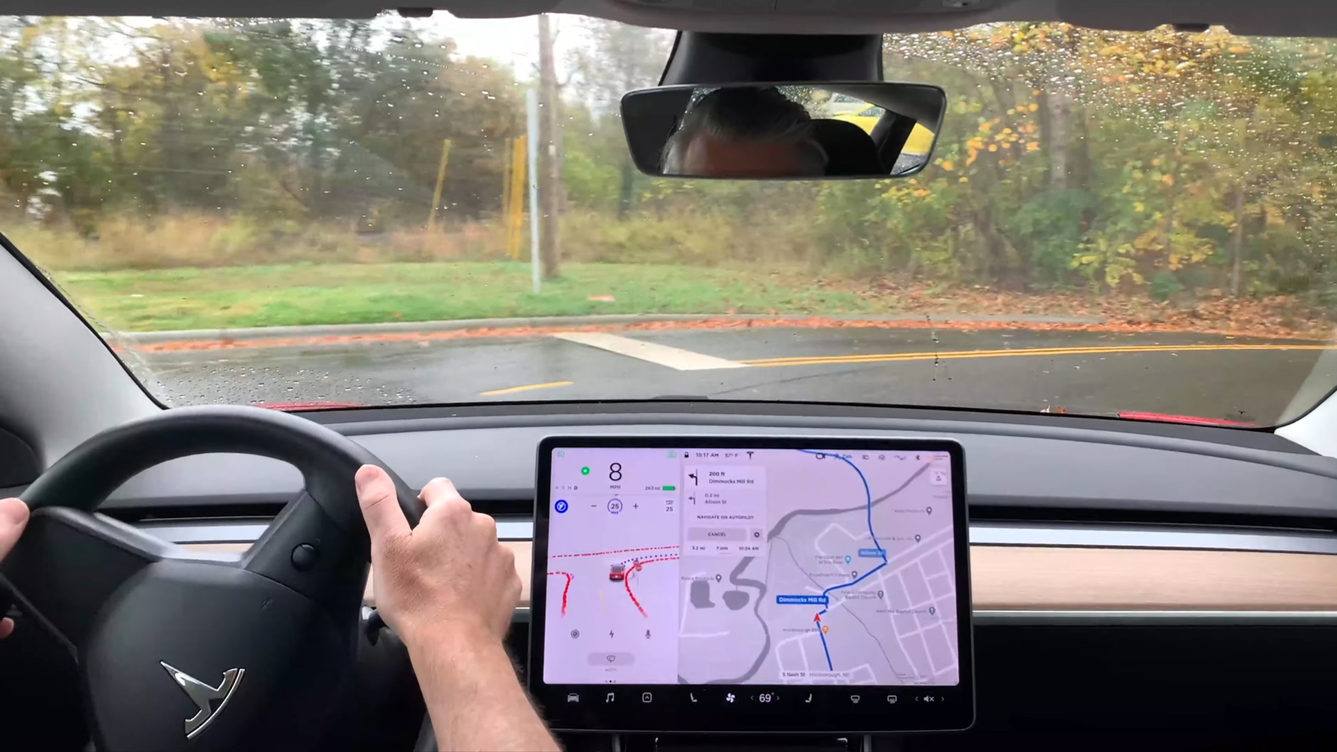 This is, after all, what a beta test is for: To find problems with a new system before it’s released to the general public. To be fair, most of the car’s performance on North Carolina’s wet, sometimes bumpy and occasionally narrow roads was pretty impressive. Aside from the blinker issue, it even seemed to fare okay through a roundabout. Another video posted by Cameron also shows the system successfully navigating around a car that was partially parked in the road: