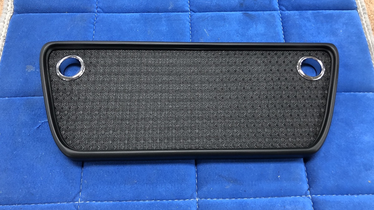 Once perfected, a final run of parts were cut for finishing, then sanded and painted matte black. For the speaker grille, Figliola chose a fabric used in restoring vintage guitar amplifiers and finished the look with OEM-spec aluminum knobs from Bentley, a dead-on match for the Cobra’s chrome gauge bezels.
