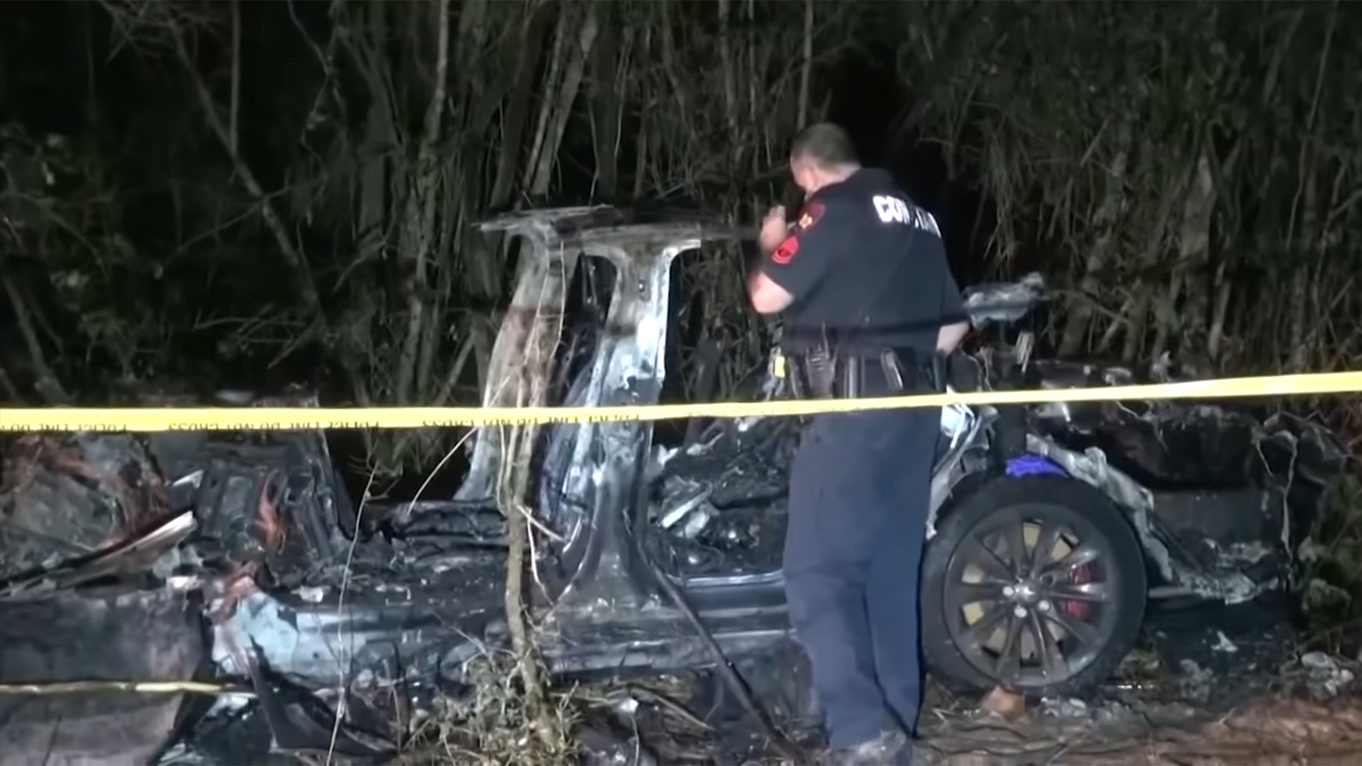 Harris County officials say they’re “100 percent certain” that neither of the two men who died in the crash were sitting in the driver’s seat when the 2019 Tesla Model S flew off a residential road in a Houston-area subdivision on Saturday night and struck a large tree, immediately exploding in flames that took firefighters hours to subdue. One victim was found in the passenger seat, and the other in the back seat. Police claim this is also backed up by witnesses, adding that the deceased, one of whom owned the Tesla, were also overheard discussing its Autopilot functions just minutes before hopping in the car for an apparent joyride around the neighborhood.