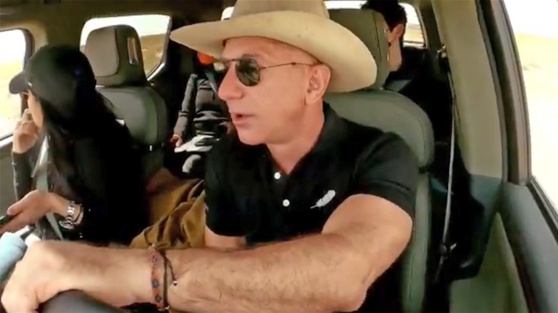 Bezos was filmed driving, complete with an oversized cowboy hat, and examining the site where a second R1T can also be seen alongside a Ford F-150 Raptor. While that means the electric pickups weren’t exactly on their own in the desert trek, it’s rather reassuring to see a few R1Ts getting put to work in harsh conditions.