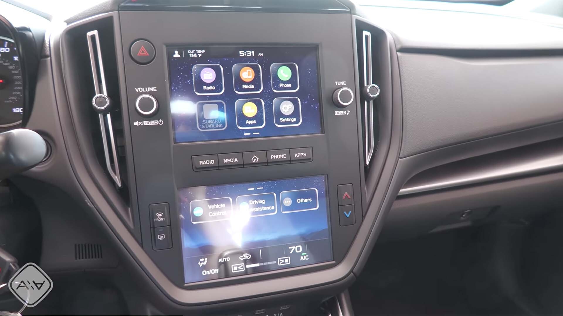 A similar configuration has been seen before on at least two other vehicles. Infiniti’s Q60 and Q50 have such a twin-screen layout, but those cars are way past their sell-by date. And even in those instances, the stacked screens are significantly better executed than they are here. Subaru’s setup is clearly a bandaid.