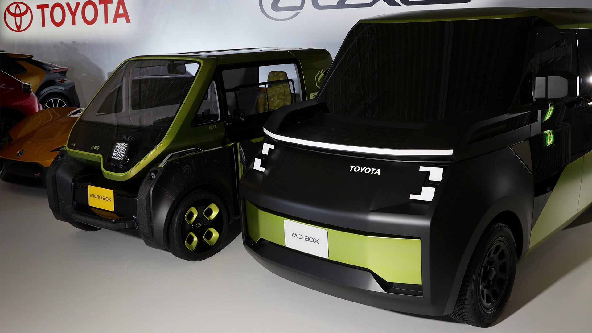 Sitting next to Toyota’s GR-branded sports car are two small vans that Toyota calls the Micro Box and Mid Box. The concepts represent Toyota’s entry into platform sharing, last-mile delivery, and light commercial use (a bit different than the e-Palette). Neither vehicle is really showcased by Akio Toyoda, but they’re briefly shown in the presentation by Toyota design boss Simon Humphries. Even those who attended the briefing in person didn’t really get a great look at the concepts toward the back of the stage.