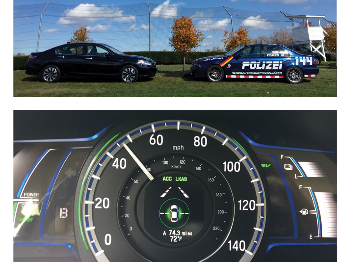 According to George Hotz, a Honda Civic with a Touring package—almost $8,000 more than the base model—has the best LKAS system on the market other than Tesla Autopilot. Alas, no Civic was available, but a 2017 Honda Accord Hybrid was, and it had LKAS. Hotz said it wasn’t as good. I can’t speak to how it compares to the Civic’s, but I was impressed out of the gate.