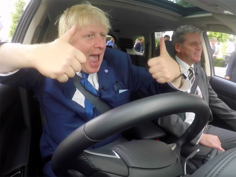 Johnson was in Tokyo recently for a test drive of Mitsubishi’s Outlander PHEV (plug-in hybrid vehicle), and with apologies to Jerry Seinfeld and his coterie of coffee-quaffing comics, Boris gives better camera.