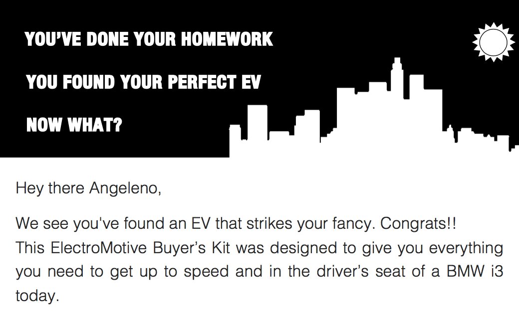 ElectroMotiveLA is a joint effort of The 11th Hour Project, which focuses on then environmental impact of human activity, and Insight Campaigns, a “social impact communications consultancy,” and receives no funding from the automotive industry. The site will hook up LA residents with their perfect EV based on the results of an online quiz; educates them about tax incentives available federally and in-state, plus carpool lane benefits; breaks down the ins-and-outs of electric vehicle and charging technologies; and even provides detailed buyer’s guides for specific models like the Tesla Model S and BMW i3.