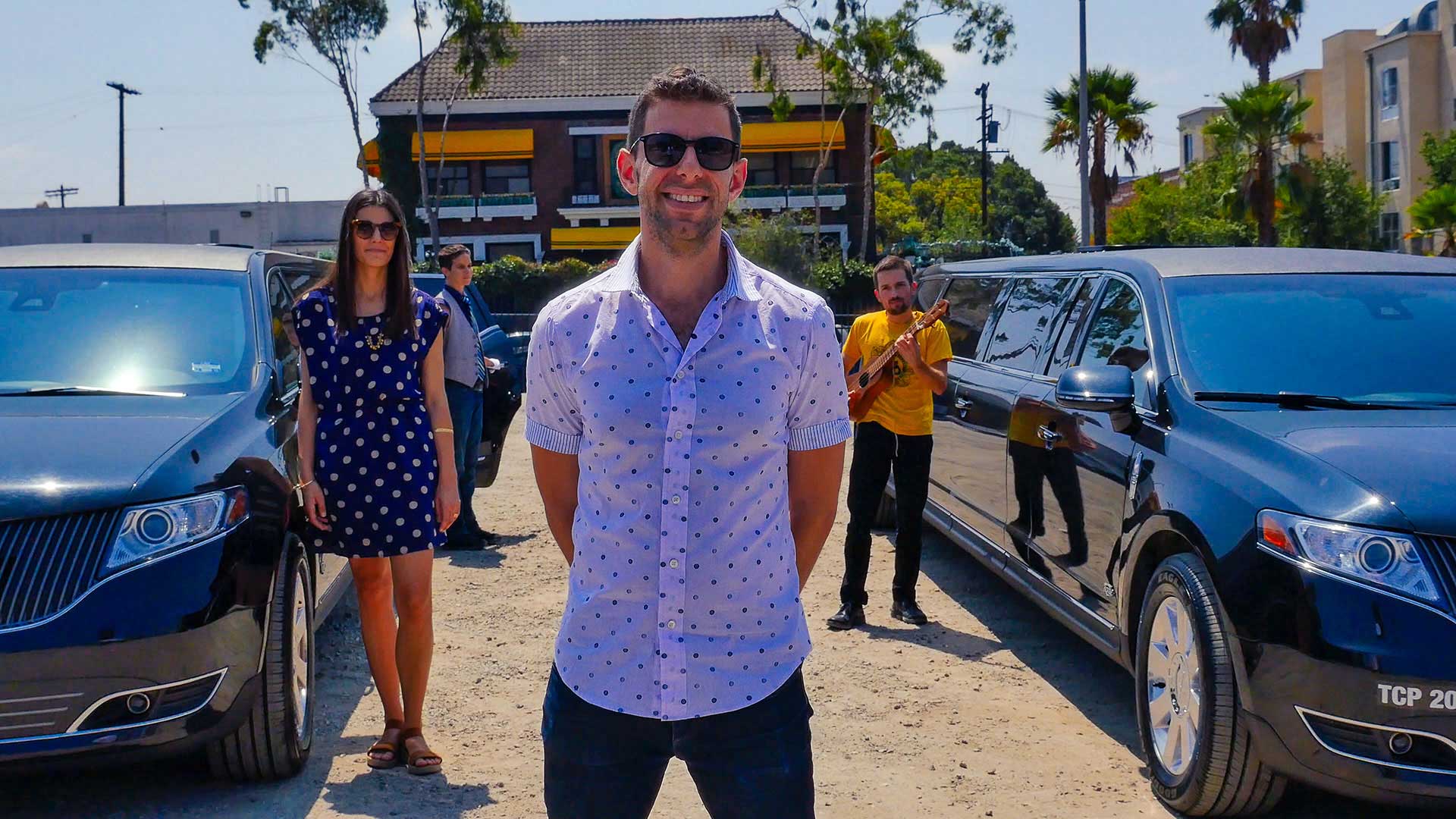A full quintet of musicians now sits in our car, following the melody of a Spanish guitarist, smiling widely. Their proximity to me—I have to avoid the stabbing motions of a violin bow—brings everything into a hyper focus. The music is loud; shit is getting heady. I look out the window of the Lincoln MKC stretch SUV I’m currently riding in. We’re passing the crumbling tombstones of Evergreen Cemetery, carved with Kana epitaphs of the early Japanese community who helped build this city. Who knows; maybe this esoteric nonsense is just making my brain swim because I’m going through some personal crisis. But something’s vibrating. I unbutton my collar and lower the window to let in some air. L.A. is cool today, a bit overcast. I can feel the humidity beading up on my forehead.