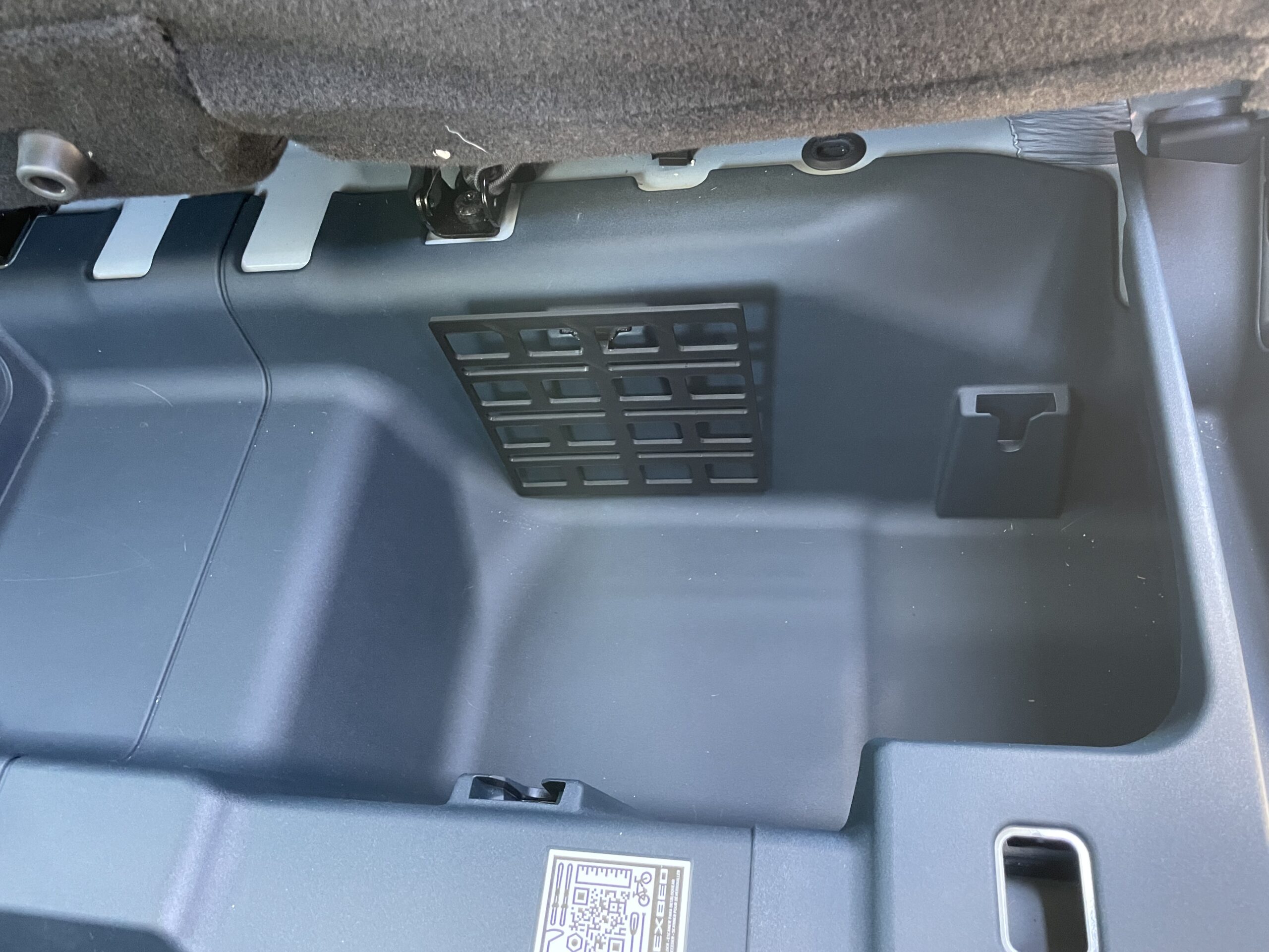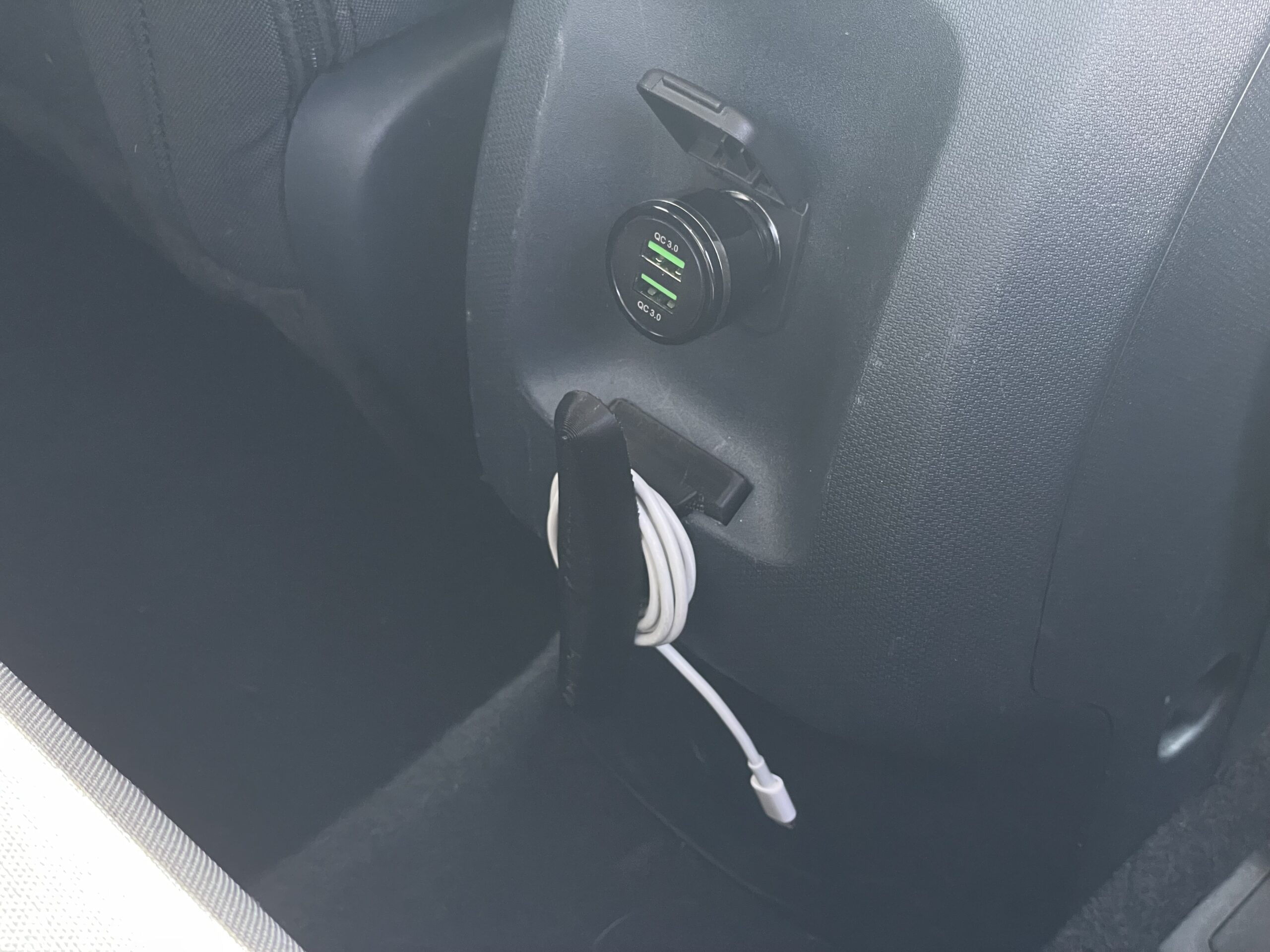 Second, the footwell of the back seat. I’m a huge proponent of passenger-facing slots for this challenge, and—I’ve said this before—I think not putting more in the cabin was really a miss for Ford. This would be easy placement, as it would essentially be a male-to-female FITS adapter that bridged from the slot inside of the under-seat compartment to the outside.
