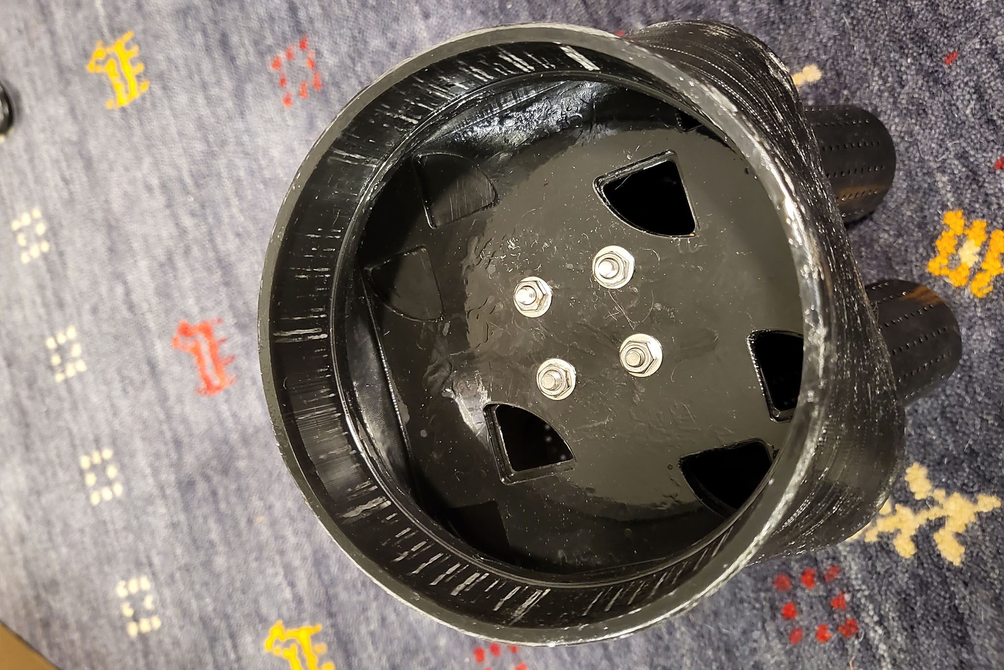 Everything besides the actual base of the machine also came out better than expected. The base adapts the duct booster to the four little hollow “hands” that hold the gloves. It printed pretty poorly but it’s functional, and the key feature I added to both the hands and the base works.