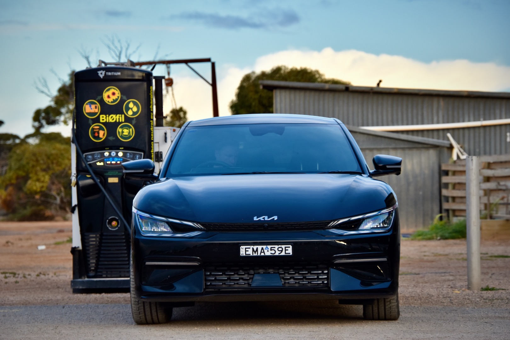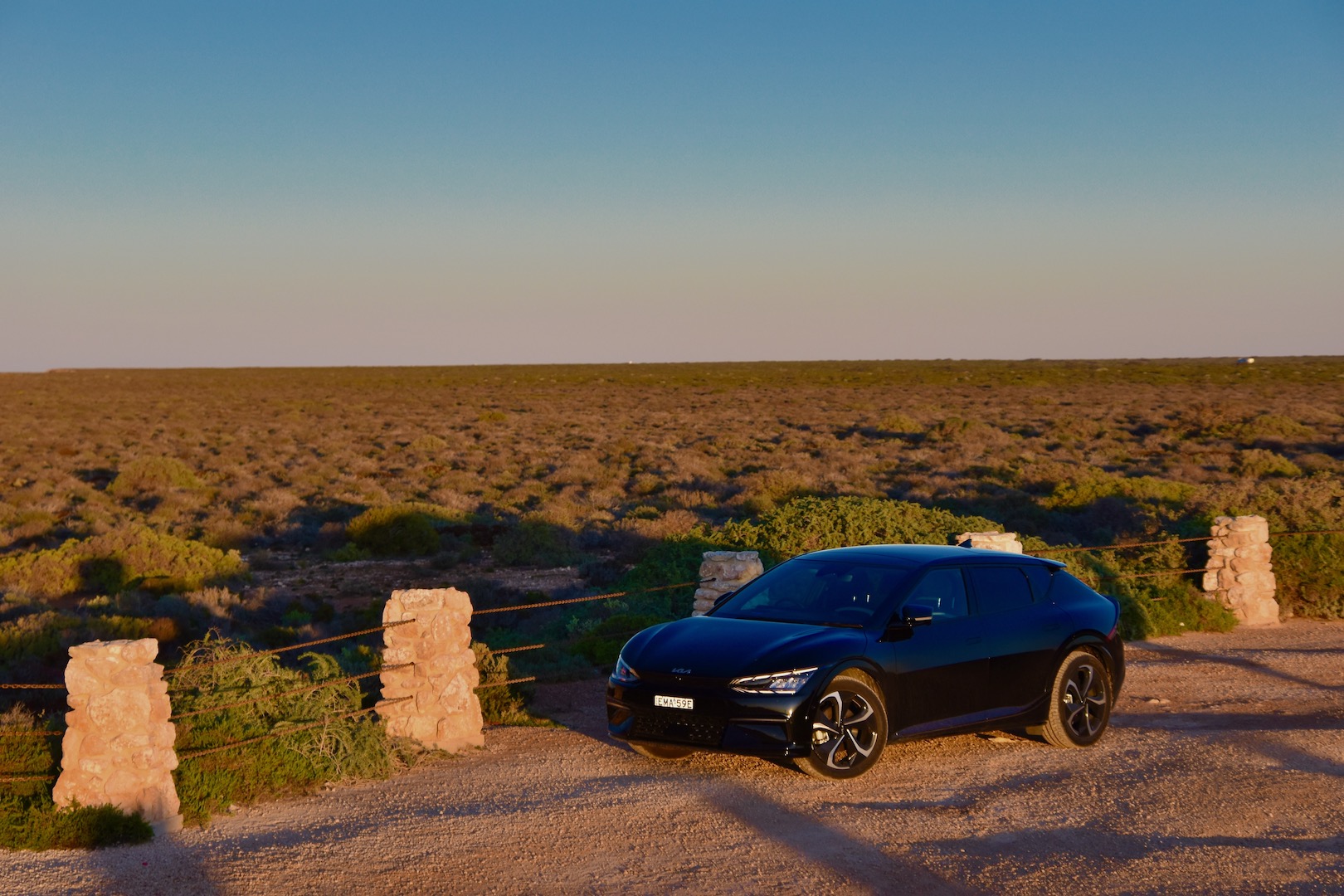 Since leaving Adelaide, the Kia EV6’s range estimate dipped with every full charge as it accounted for our energy-intensive highway driving. That cold morning, with temperatures barely above freezing, it read 227 miles. We had 234 between us and the next charger in Madura and the longest day of driving on the entire trip ahead of us.