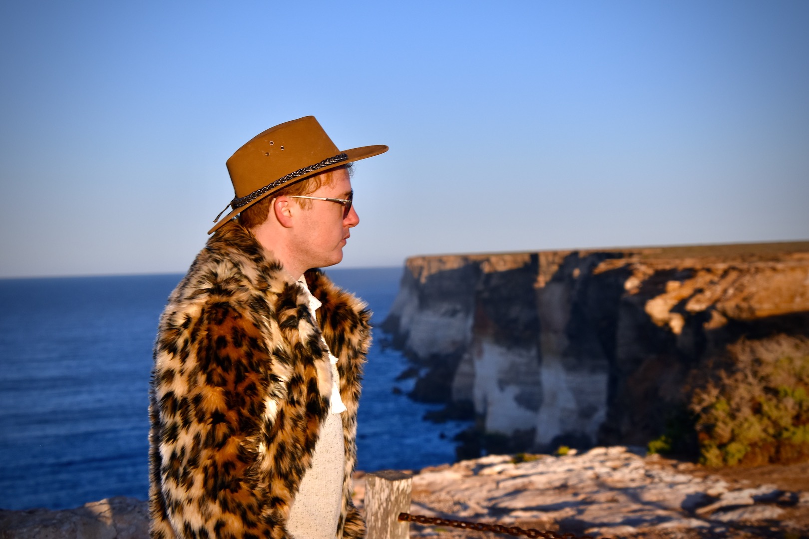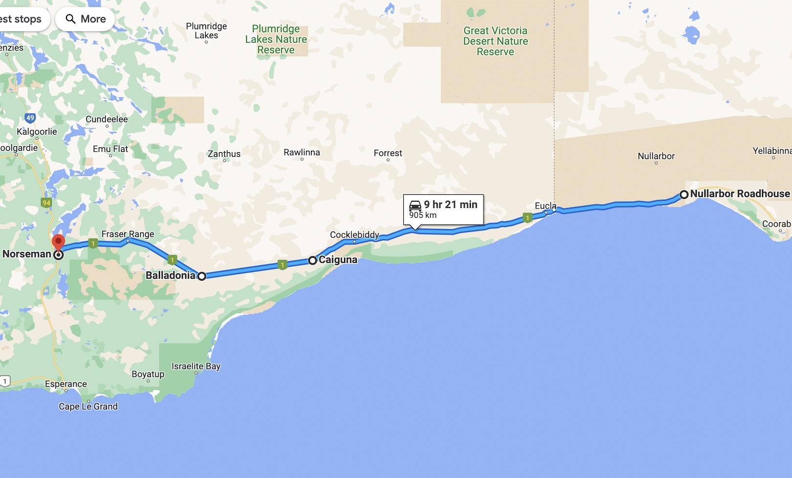 But even 70 wasn’t doing the trick. We dropped further, to 65 kph, then 60, about 37 mph. It turned what should’ve been about a 3.5-hour drive into a nearly six-hour slog through a dissonant, monotonous landscape. Though we were sometimes within sight of the coastal cliffs, the fields of saltbush over pale limestone seemed to stretch forever, unchanging over hundreds of miles. (Still no kangaroos, though.) We started to wonder if we’d even make our motel that night, and have to make emergency arrangements instead. That wouldn’t be easy if we ran out of juice where there’s no cell reception, or stopped somewhere with a closed front desk or no vacancies—both problems we’d had to think around so far.