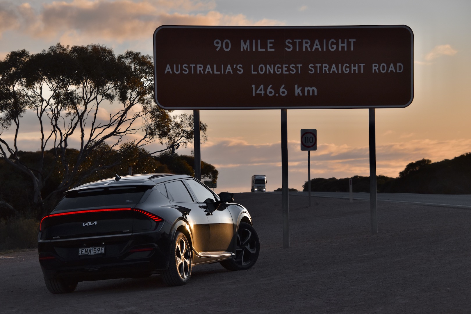 It also turned out that they had heard about our journey, with word having circulated in Australian EV circles. After bidding farewell, we hooked up to charge, bought half a dozen candies neither of us had ever seen before, and set off on the 90-Mile Straight with the sun setting.