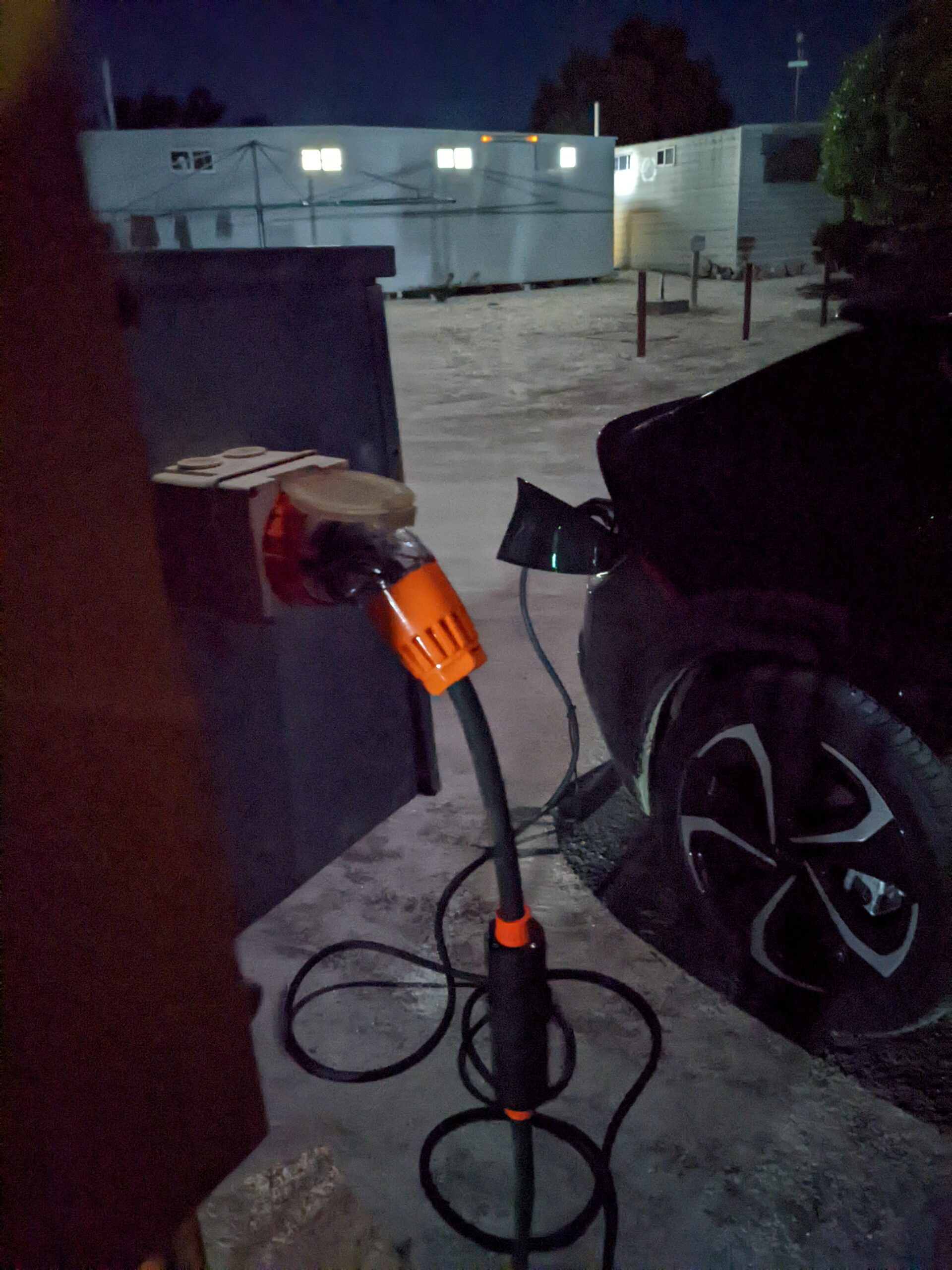 We then hopped across to the caravan park to secure our lodgings and score a charge. A quick chat with the proprietor told us we should call ahead to make sure the other chargers on our route were functional, and we were glad for the advice.