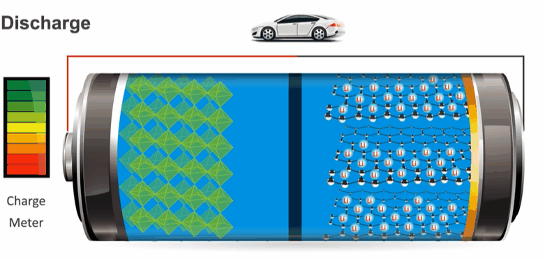 Most BEVs today use lithium-ion batteries to store energy. Though the chemical makeup of the battery can differ from manufacturer to manufacturer, the building blocks are relatively the same: an anode, cathode, and electrolyte. It’s less important to understand the why behind the science for our purposes today; what matters is that electricity is discharged from the battery cell as the lithium ions travel through the electrolyte from the anode to the cathode (and the reverse when charging).