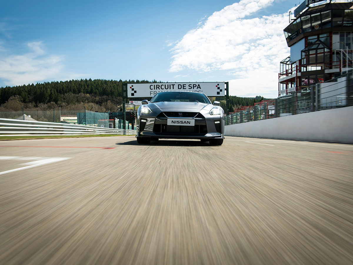 I’m about to drive Spa for the first time, a half-blind circuit whose shroud of fog and pelt of rain turns the surrounding Ardenne forest into some serious Misty Mountain shit. My blue 2017 GT-R awaits, with 565 horsepower (up 20 hp from last year) and a jaunty No. 8 affixed to its doors. All I can say is, thank God for all-wheel-drive. Though even that bonus grip doesn’t prevent a professional racer and instructor from spinning off the track and bashing a barrier just minutes before my stint. Mon Dieu.