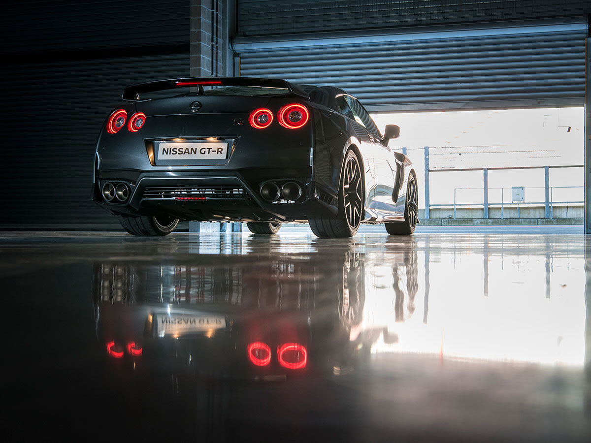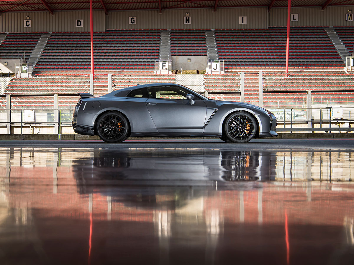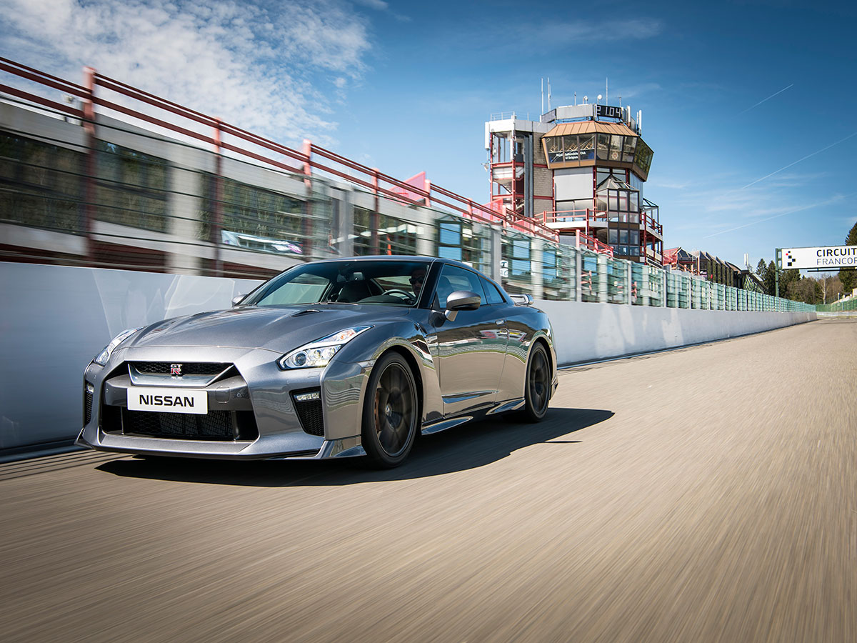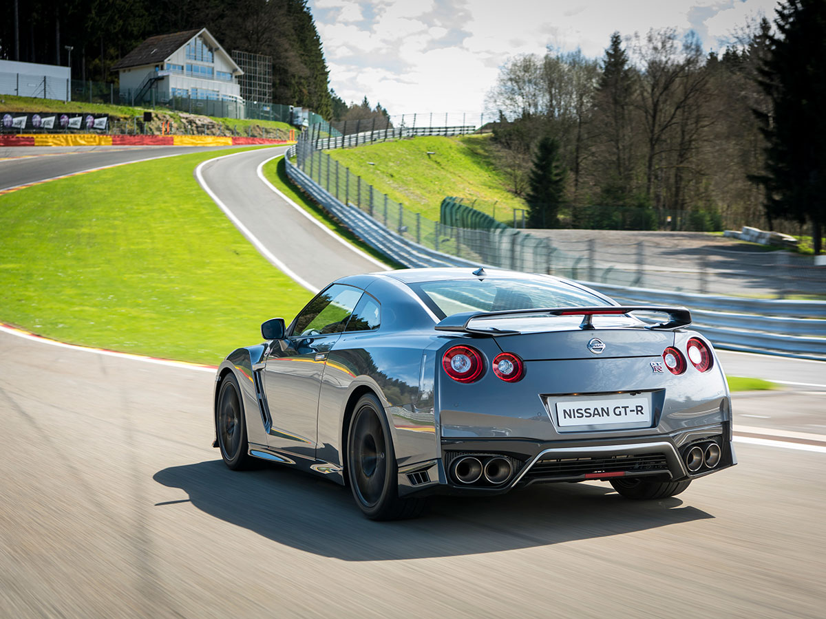 On Spa’s buttered Belgian waffle, it’s tricky to assess the Nissan’s upgraded game. But on a romp back to Dusseldorf airport the next morning, the dry autobahn now welcoming blasts to 150 mph, the GT-R does feel a skosh more balanced, certainly more compliant. Still a sledgehammer, now with a velvet wrap. Looking to straighten one of Europe’s endless roundabouts, I wrench the GT-R through the makeshift skidpad, and find myself pushing 100 mph at the entrance to a quaint Belgian village. A guy in a VW Polo sees me coming, sticks his hand out the window and flips me off. In a Nissan GT-R, some things never change.