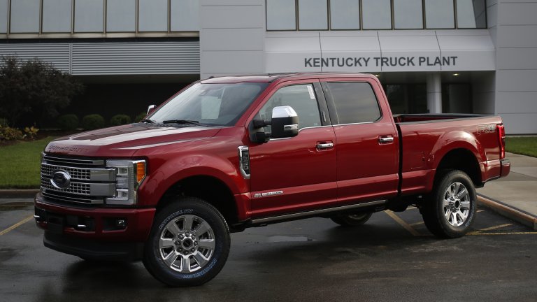 I drove the Super Duty over to Extech Building Materials in my neighborhood, where manager Piotr Worosz had his forklift man drop a 3,360-pound pallet of concrete into the bed. Maxed out in F-450 dually trim, the Super Duty can actually tote 7,630 pounds in its bed and tow a staggering 32,500 pounds—or roughly five times its own weight. Even for this F-250, having the equivalent of a Corvette in its bed felt like carrying a sack of groceries: Effortless. I really should have dropped in a second pallet, but I didn’t want to hurt this ridiculously lavish, aluminum-bodied, $77,700 pickup.