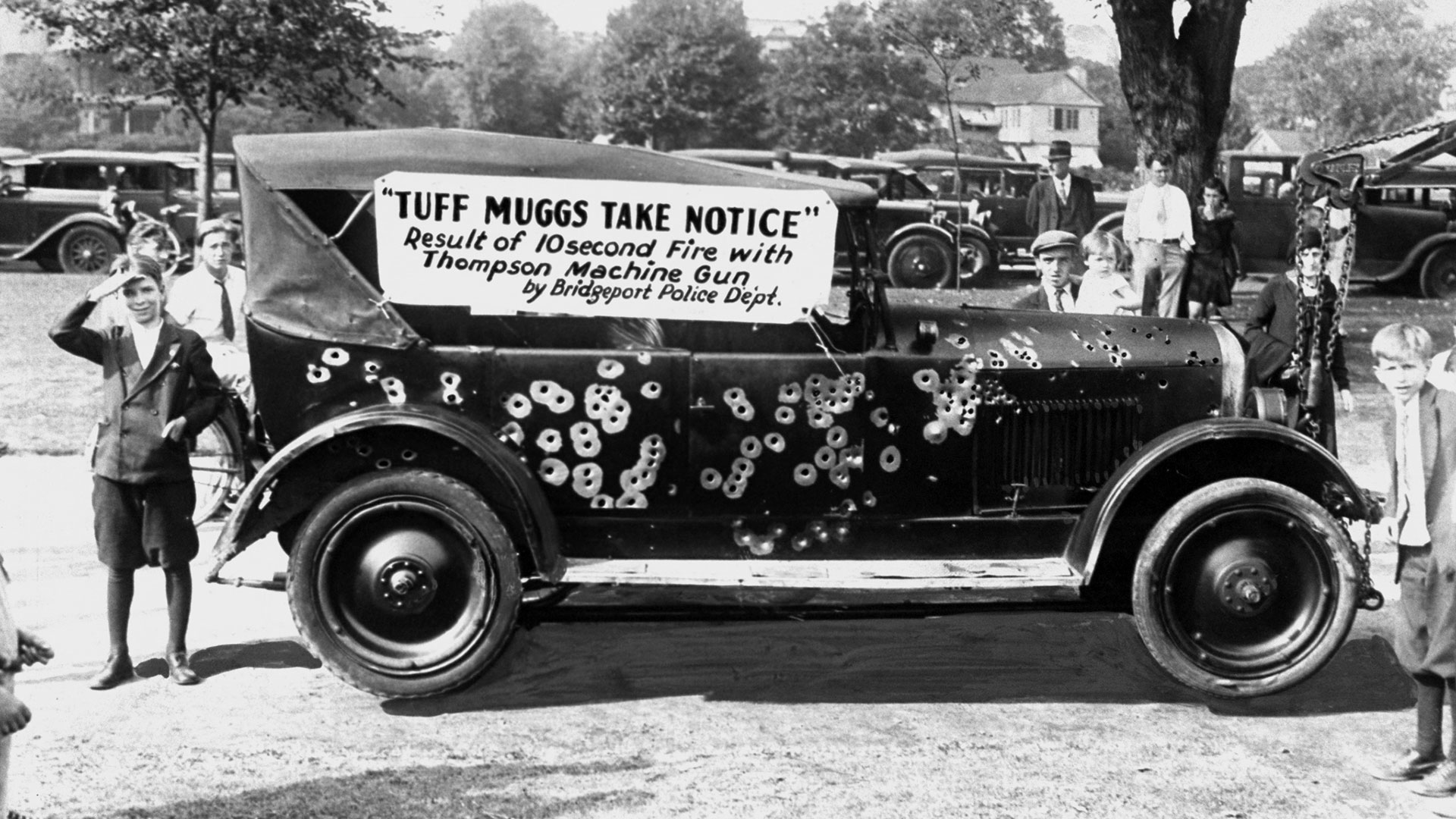 That’s what this Depression-era display was going for. Beset by the scourge of gangsters and robbers, the police and fire departments of Bridgeport, Connecticut, set up this bullet-riddled sedan, with a sign indicating that with Thompson machine guns, they could turn a car into swiss cheese in 10 seconds or less. It’s pretty alarming to imagine anything soft and fleshy on the other side of those hole-y doors. Were we a Tuff Mugg, we’d sure take notice and highly consider a career involving fewer machine guns. Like, seamstressing.