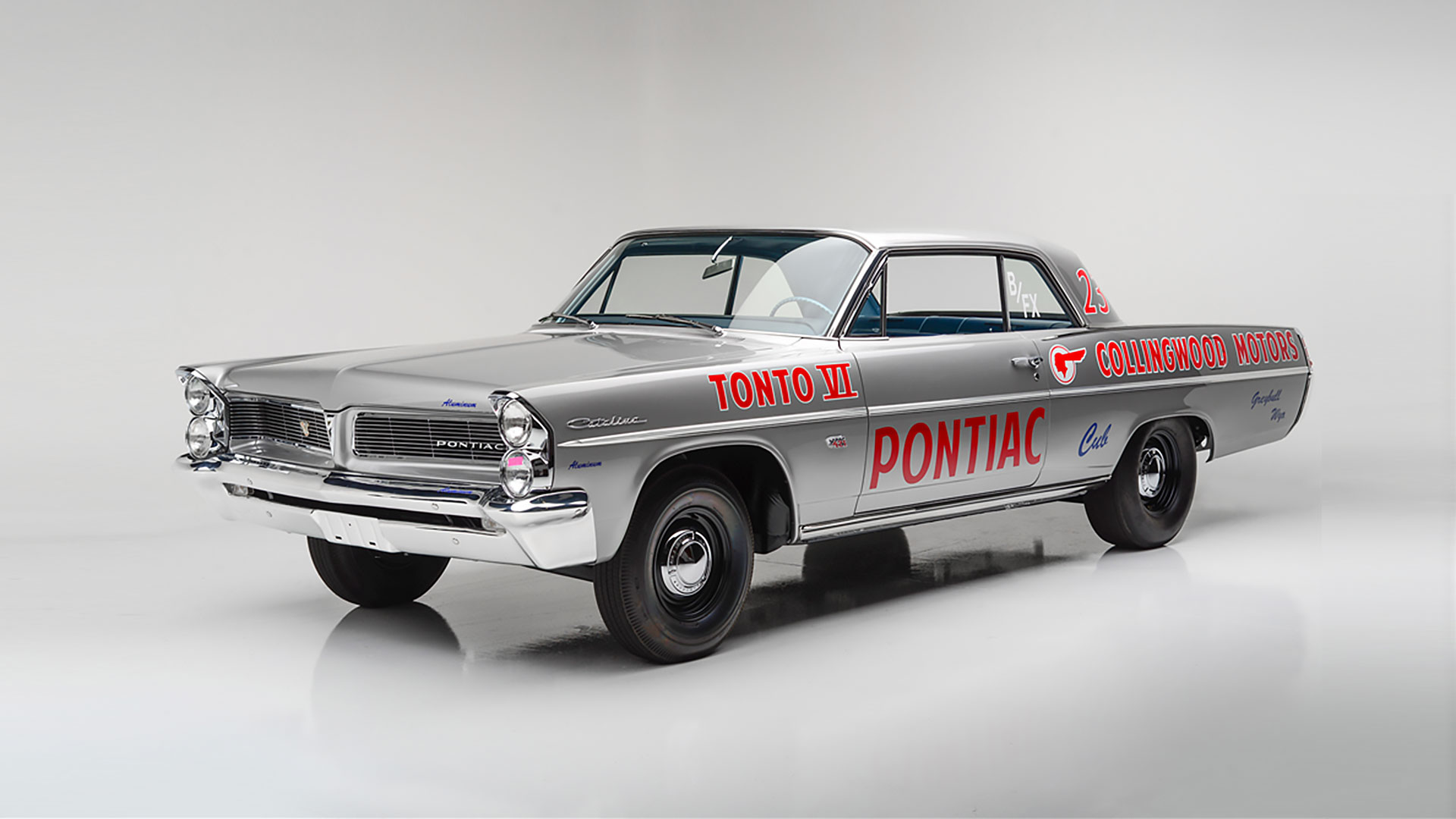 Barrett-Jackson’s annual January festival/circus has one of these super rare dairies, and auctioneers are hoping to beat the $530,000 that Mecum got for one last year. “Tonto VI” (it’s a Sixties Pontiac) is the last lightweight Super Duty built two weeks after General Motors banned their production. How? Tonto IV was designating a “Pontiac Engineering Research vehicle,” then delivered to Collingwood Motors in Greybull, Wyo., where Alan “Cub” Collingwood reportedly raced at the local airstrip.