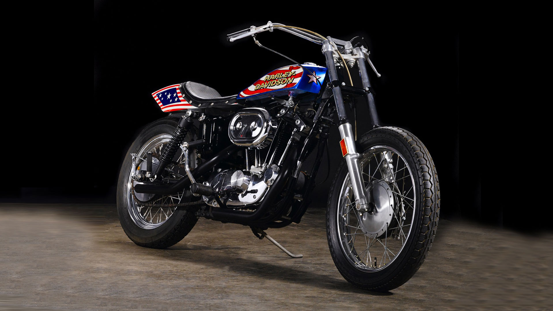 Built for the Evel Knievel feature film Viva Knievel! by legendary movie stuntman Bud Ekins, this Sportster has pedigree for days. The bike starred alongside Knievel himself as he battled Mexican drug dealers with the assistance of Gene Kelly, Lauren Hutton and Leslie Nielsen.