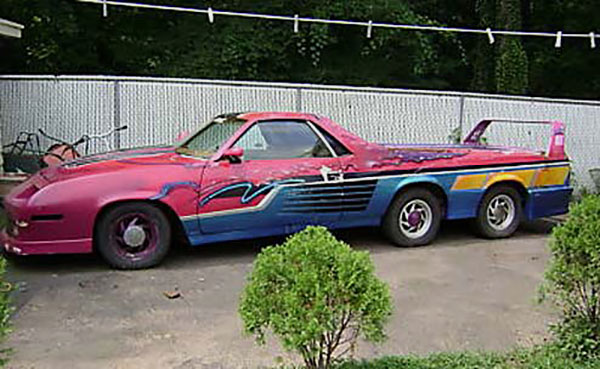 This Frankencar was the spawn of Rolando “Roly” Fernandez, the Miami customizer who later wound up in federal prison for his involvement with the Medellin cartel. The drug connection here is worth noting, because what you’re looking at is a Camaro torso and nose mashed together with an El Camino’s hindquarters. The paint job. The spoiler. It’s unclear if the third axle is under power of the stock V8 but, c’mon, look at those side strakes. The vehicle (contraption?) was last seen on eBay, finished in matte black primer and sitting in a Kentucky driveway, which somehow seems fitting.