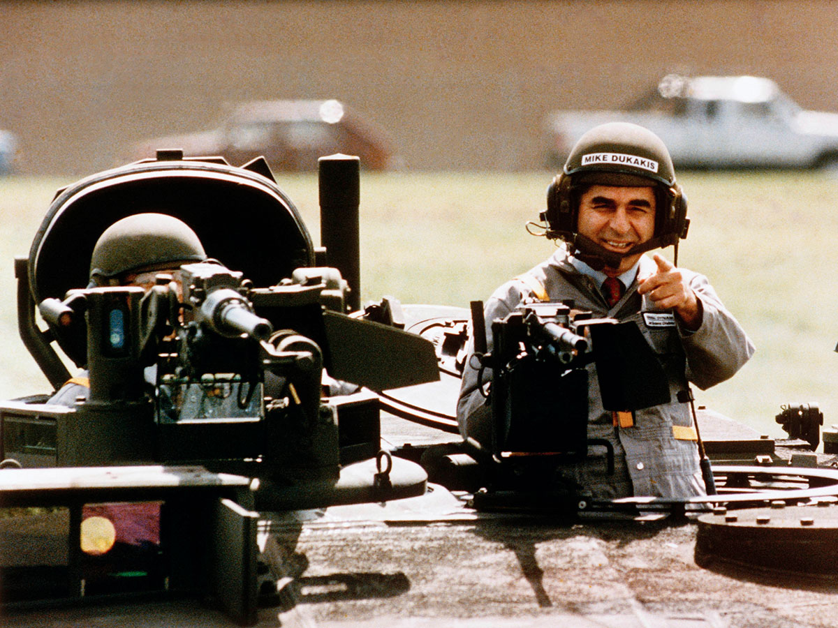 In 1988, Michael Dukakis was the Democratic front-runner, all set to give George H.W. a run for his oil money. Dukakis was dynamic, popular, and combined an effective Massachusetts governorship with an inspiring immigrant tale. All was well until he visited General Dynamics in Sterling Heights, Michigan, manufacturer of the mighty, 68-ton M1A1 Abrams Battle Tank. Dukakis, a diminutive, well-groomed man, threw on an army helmet, replete with nametag, clambered aboard the vehicle, and pretended to be something he was not. It was a goofy circumstance, and undercut credibility rather than bolstering it. The photo effectively torpedoed Dukakis’ political ascent. To this day, “Dukakis and the tank” is a phrase staffers use to warn against potentially humiliating photo ops.