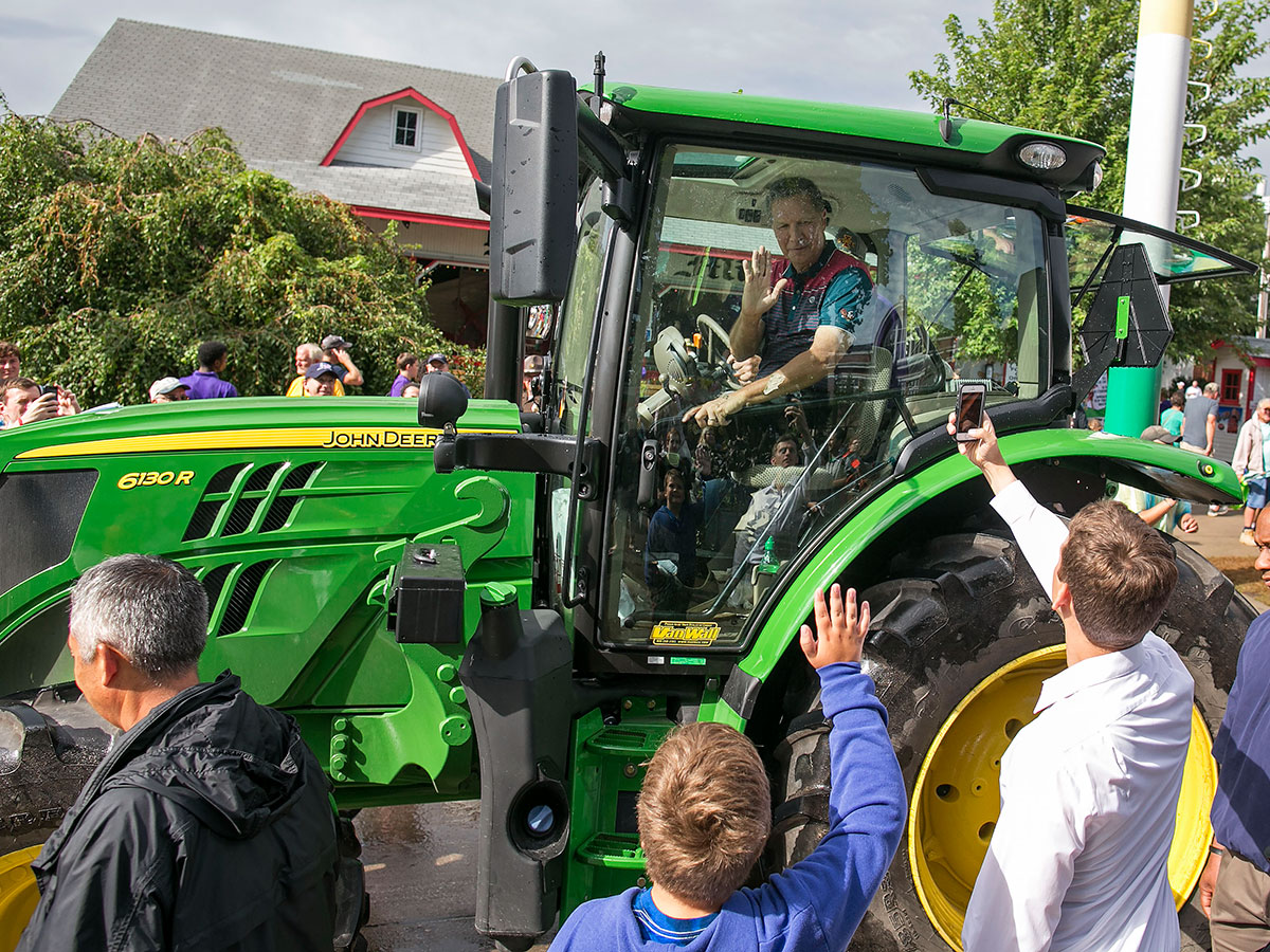 In case that tale of woe doesn’t strike fear into politico’s hearts, we’ve assembled images of politicians astraddle equipment they’ve never really used before and likely won’t encounter again. Like all those half-eaten, Iowa State Fair corn dogs, these goofy photos stand in testament to the lengths American politicians will go to win a rural heart.