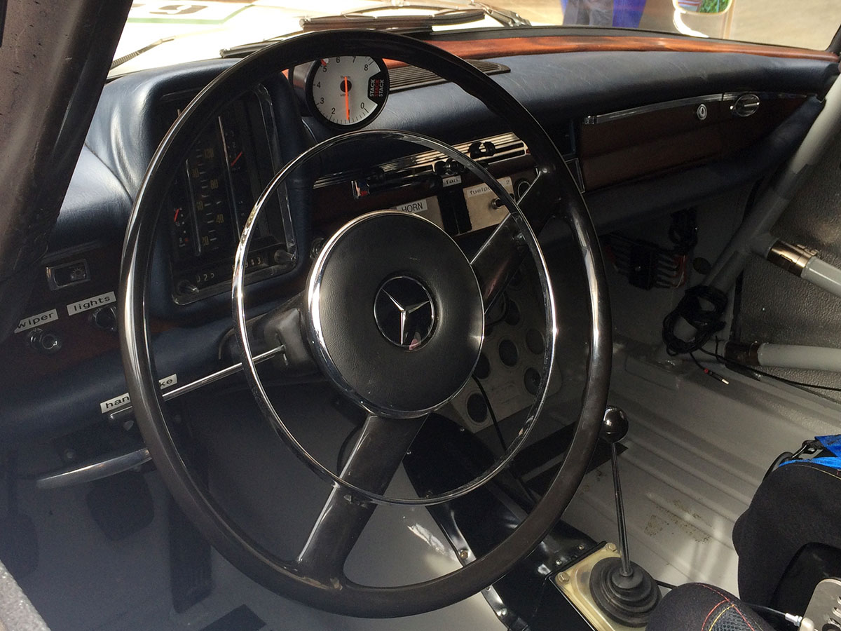 “Mercedes rejected rack-and-pinion steering in these luxury cars because it provided too much feedback,” Sander says. “The roads back then weren’t nearly as good as they are now, and the recirculating ball system they used instead kept drivers from having to make constant adjustments, so they were less fatigued. Same reason why we had these giant steering wheels.” He points to the wheel, with a circumference more Magellan than Momo.