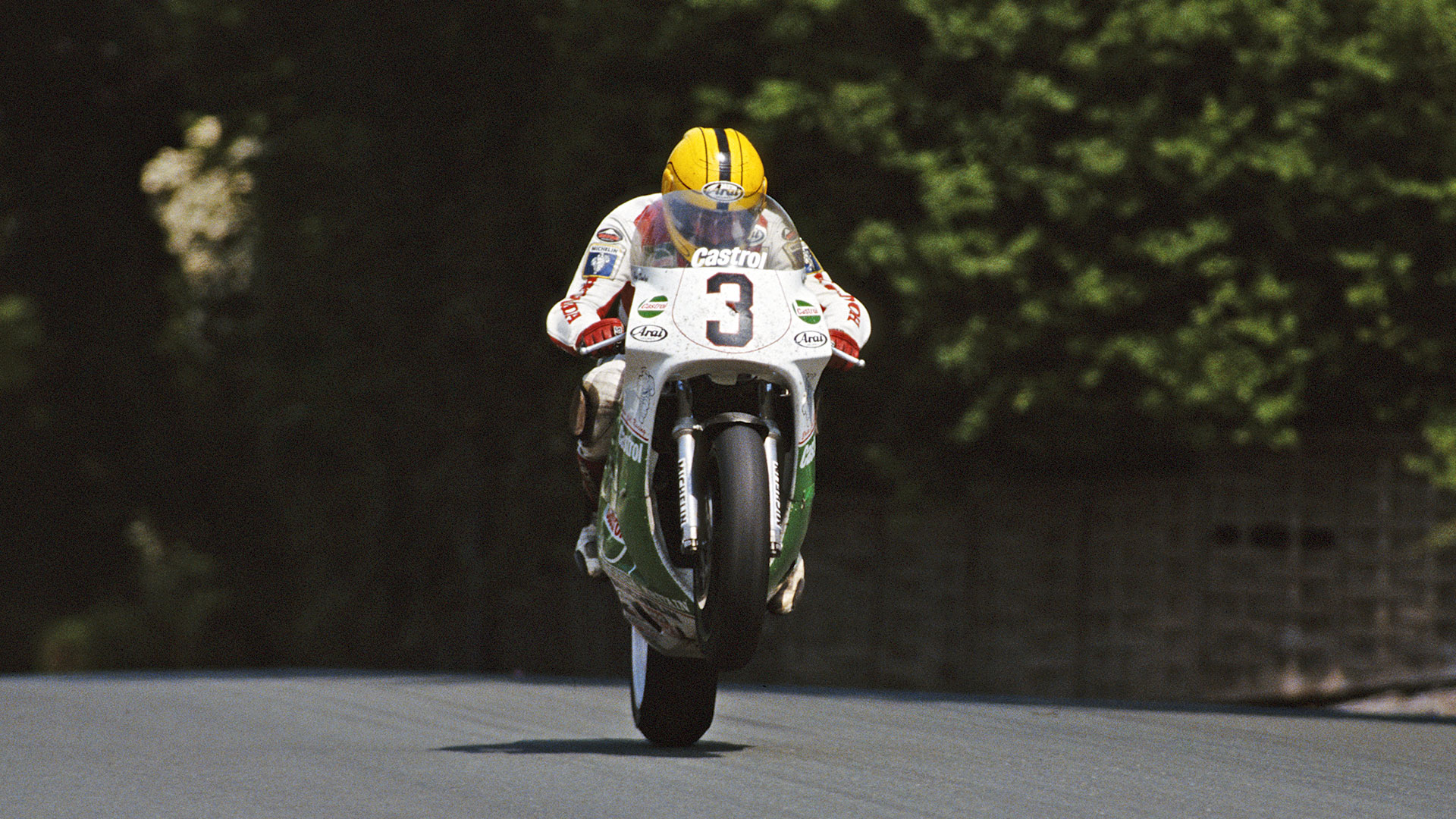 ‘Bout ye? C’mere ’til I tell ye the story of wee Joey Dunlop, the best rider in Norn Iron. Was he fast? Catch yerself on—yer only talkin’ about a world champion, like? Won twenty-six times at the Isle of Man TT. Three hat-tricks, 1985, 1988, and 2000. Just a flyer.