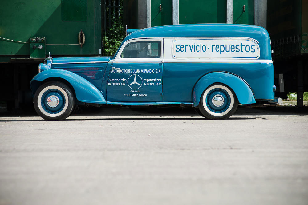 Over the next decade Varrone bought 17 Mercedes trucks from Fangio Concesionarios, and spent a lot of time in the dealership, where they had an old Mercedes-Benz 170SD delivery wagon filled with assorted ancient parts, rusting away. After years of negotiation Varrone acquired it, even tracking down one of Fangio’s old delivery drivers. With the help of his friends in the Fangio family, Varrone restored it to its 1954 specifications, and it’s been displayed in a museum since.