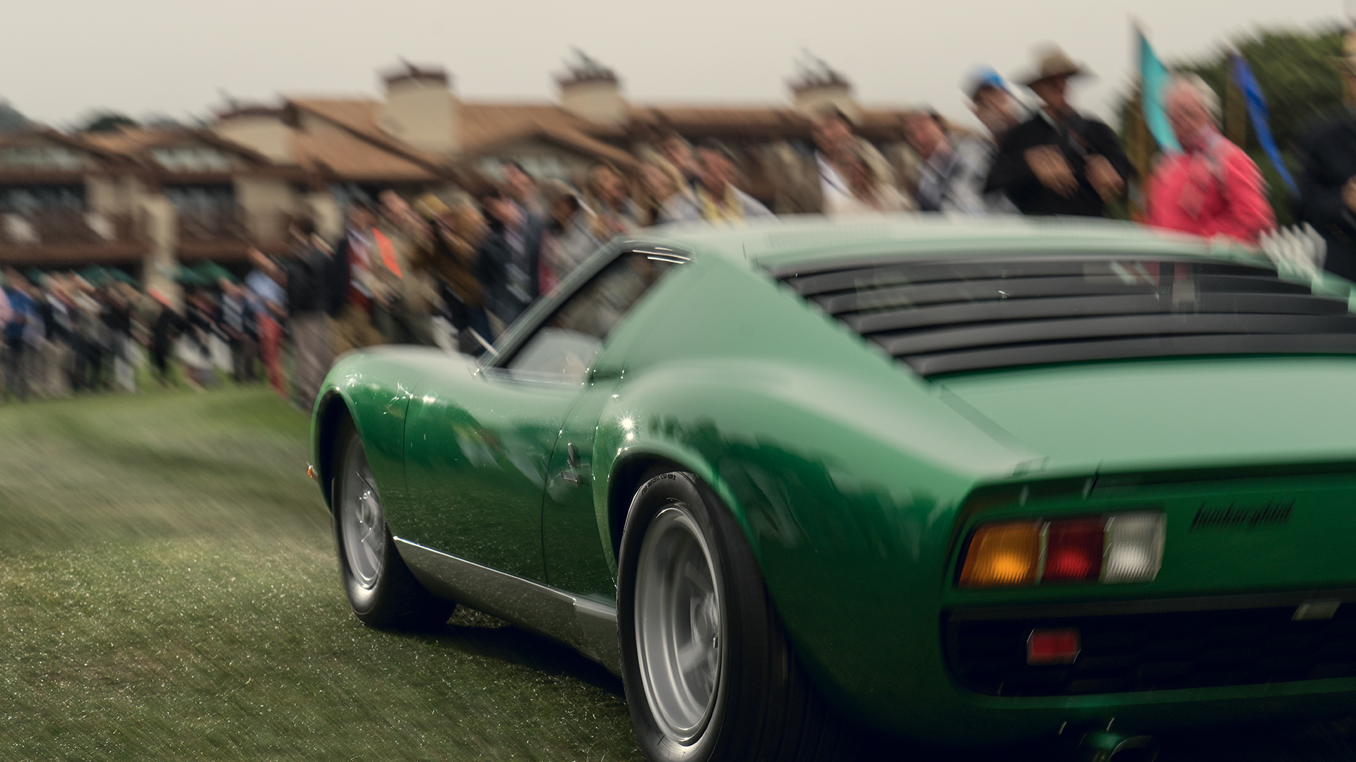 This year, the thematic feature of the Concours is the famed Ford GT40, but the meat of the field is filled out by dozens of vintage BMWs (it’s the 155th anniversary of the marque), ’60s concept cars, almost unidentifiably obscure pre-Wars, Delahayes, Lamborghini Miuras, a spectrum of Ferraris, pre-war Aston Martins. The list is long, but the time is short.