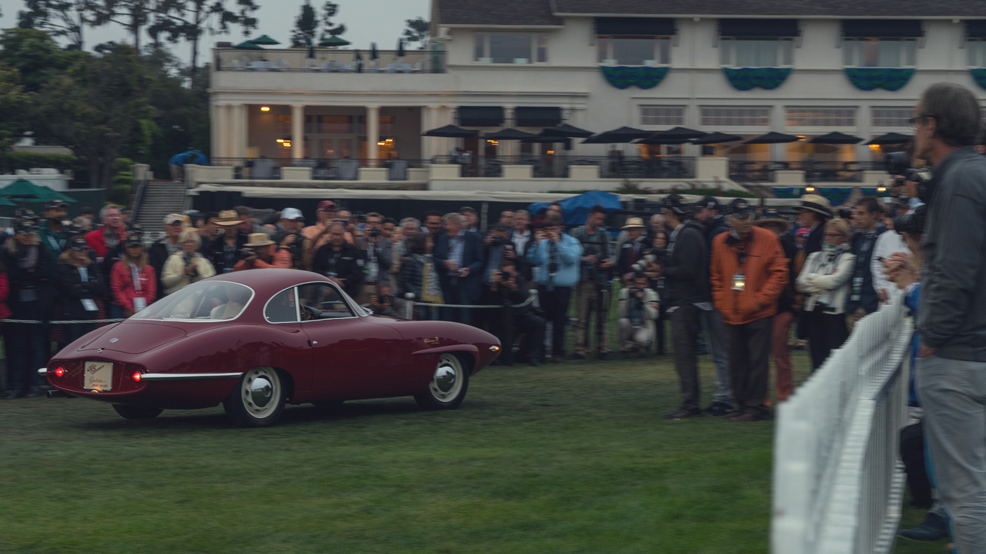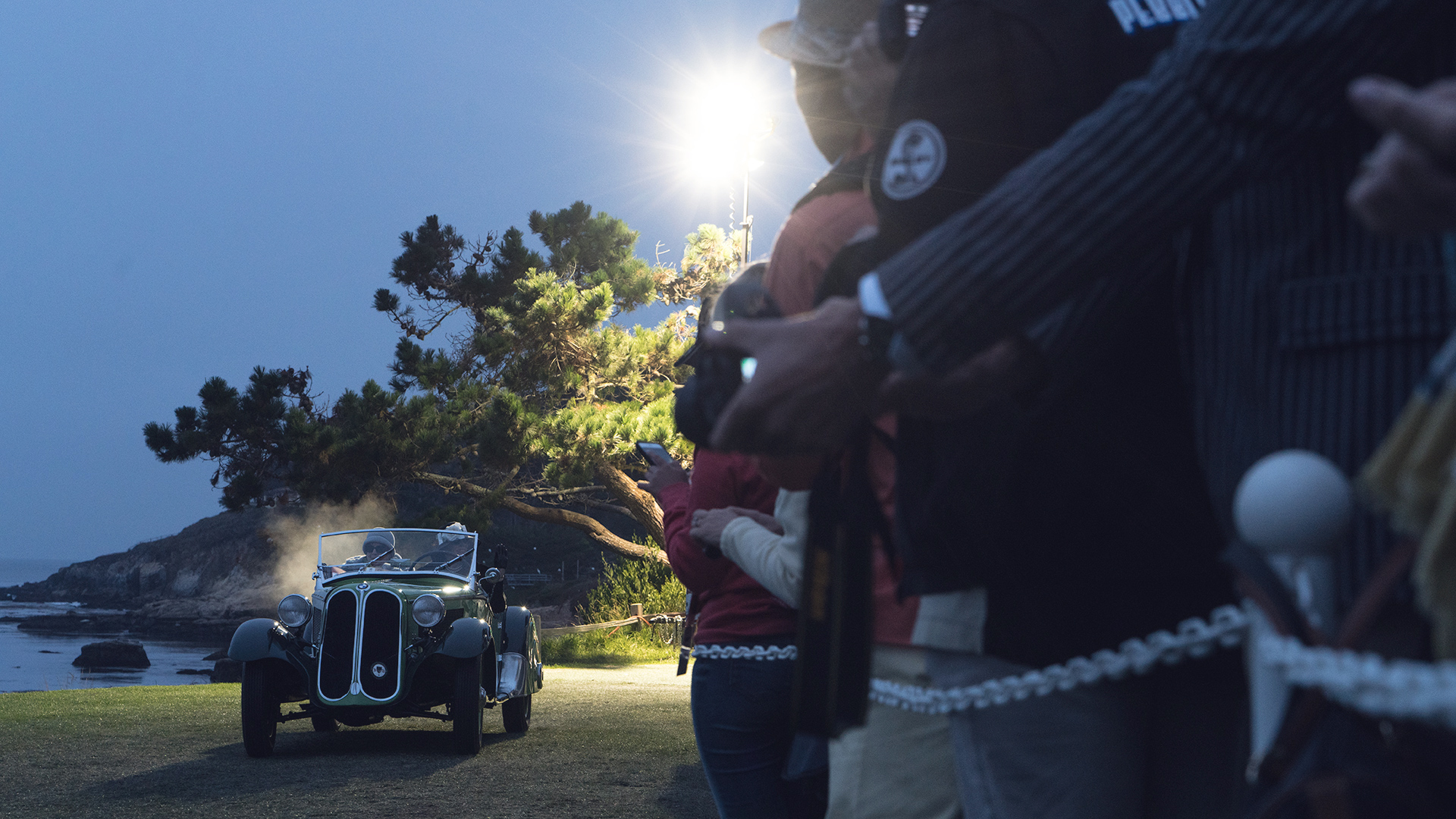 Sleep is for fools. That’s the word at Monterey Motor Week, where there is just too much for any aficionado to see. And then there’s the Pebble Beach Dawn Patrol, an unofficial and yet essential component of the Concours d’Eegance. This is where the truly exhausted go for broke. Like Polar Bear Club swimmers, the vintage car tribe unnecessarily inflicts a little low-stakes pain as the cost of entrance, and rolling out of bed at 3am with a crushing hangover is that pain. They swallow Advil and trudge near the teebox on the 18th hole at Pebble Beach to watch a parade of exquisite collectable cars roll onto the fairway in preparation for the Concours d’Elegance this afternoon.