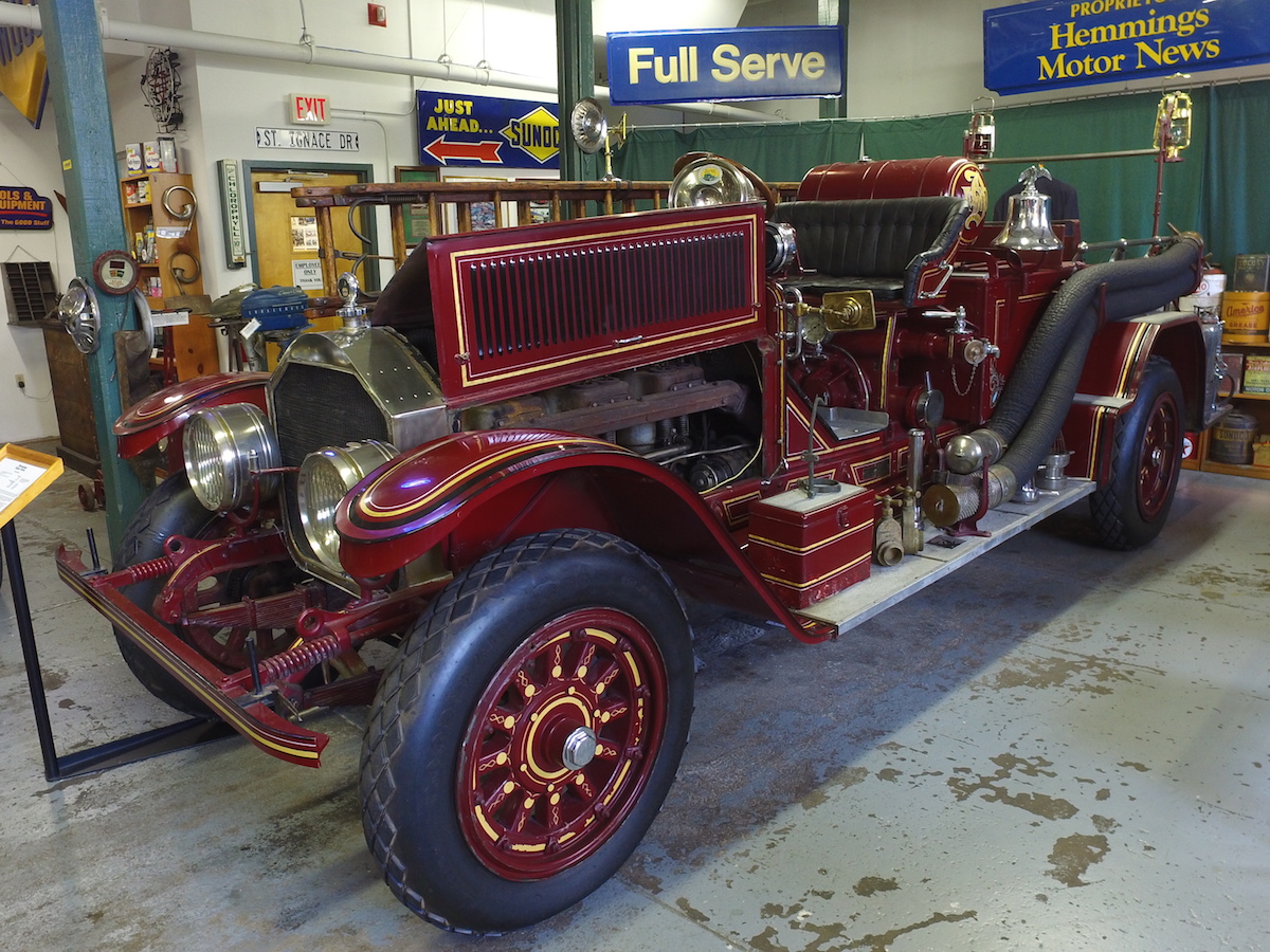 This Type 38/39 triple combination pumper was the first motorized fire truck in Bennington. Found in the possession of a New Jersey collector, it was returned to its home state a few years ago. It ran in parades, until a crack in the one of the inline-six cylinders sidelined the beast. New, it cost $10,750, boasted 85 horsepower and had a top speed of 35 miles per hour, while consuming 6 miles per gallon. The body was sheet metal over angle iron and hardwood and the massive rims – wooden artillery types – housed 38” tires in the front and 40” in the rear. Everything was manufactured in-house, including the steel-ladder chassis, the T-head engine, and the pumper.