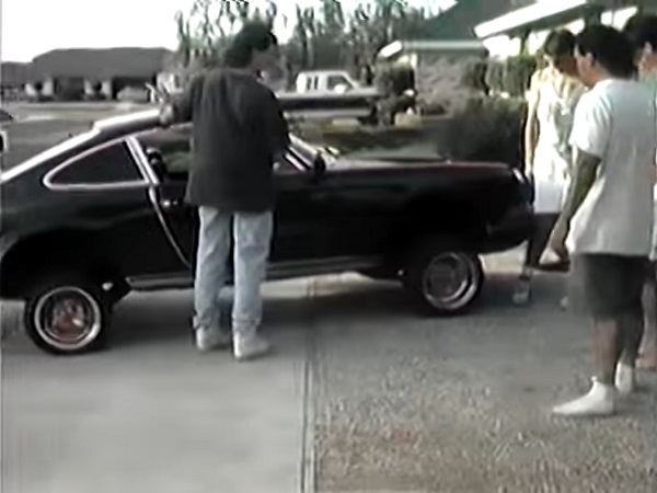This video is fun, because you watch the guy at the controls hitting switches, picking it up and dropping it again. This Porsche sits quite low on its gold spokes (possibly 12″ wheels, it’s difficult to tell), and can jump up to an easy foot and a half off the pavement. The car appears to move up and down by the axle, so I’m not sure this Porsche could move in three-wheel motion position, but it remains old school cool. These days, we lament the gaudy modifications, the whale tail, the late rear bumper on an early car, and the chrome trim everywhere, but back then it was probably the star of every lowrider show it attended. It was new and different, as far as I know, a one-of-a-kind.