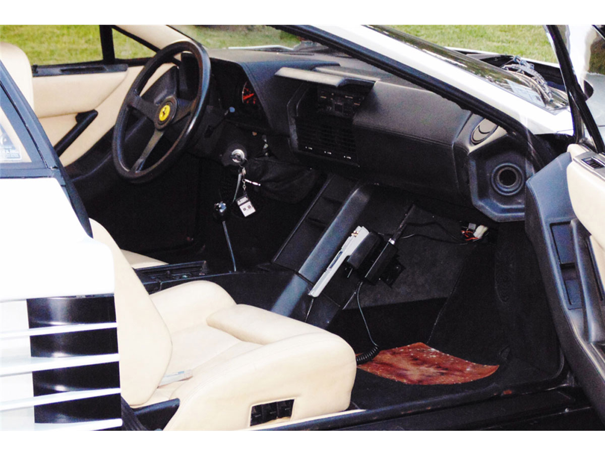 To be clear, this is the hero car, Serial No. 63631. It’s one of two Testarossas that Ferrari provided Universal Studios with for the television series’ third, fourth, and fifth seasons. Finished in black metallic from the factory, the car was resprayed white for its appearance on Vice. (Legend holds that, in an inspired moment, showrunner Michael Mann ordered the new paint color to better reflect Miami’s neon jungle during night driving scenes.) After 65 episodes, the car was retired in 1989 and put into storage the following year, where it remained until 2015.