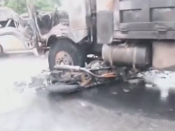 The truck’s occupants escape out the passenger side, and the motorcyclist shows off some impressive stop, drop, and roll technique to put out the flames. Bystanders, including the truck’s driver, quickly run up and help drag the man to safety as the fire grows even bigger. It reportedly took 40 minutes to extinguish, and the motorcyclist was taken to a nearby hospital with non-life-threatening injuries.