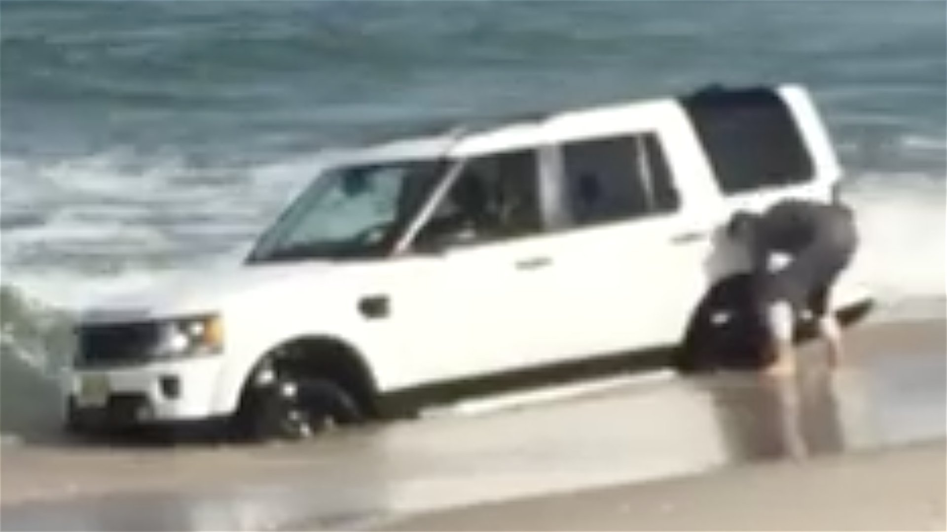 A video uploaded to a Facebook group Tuesday shows the situation going down. As the tide rolled in, the water surrounded the white LR4 and the car sank deeper and deeper into the beach.