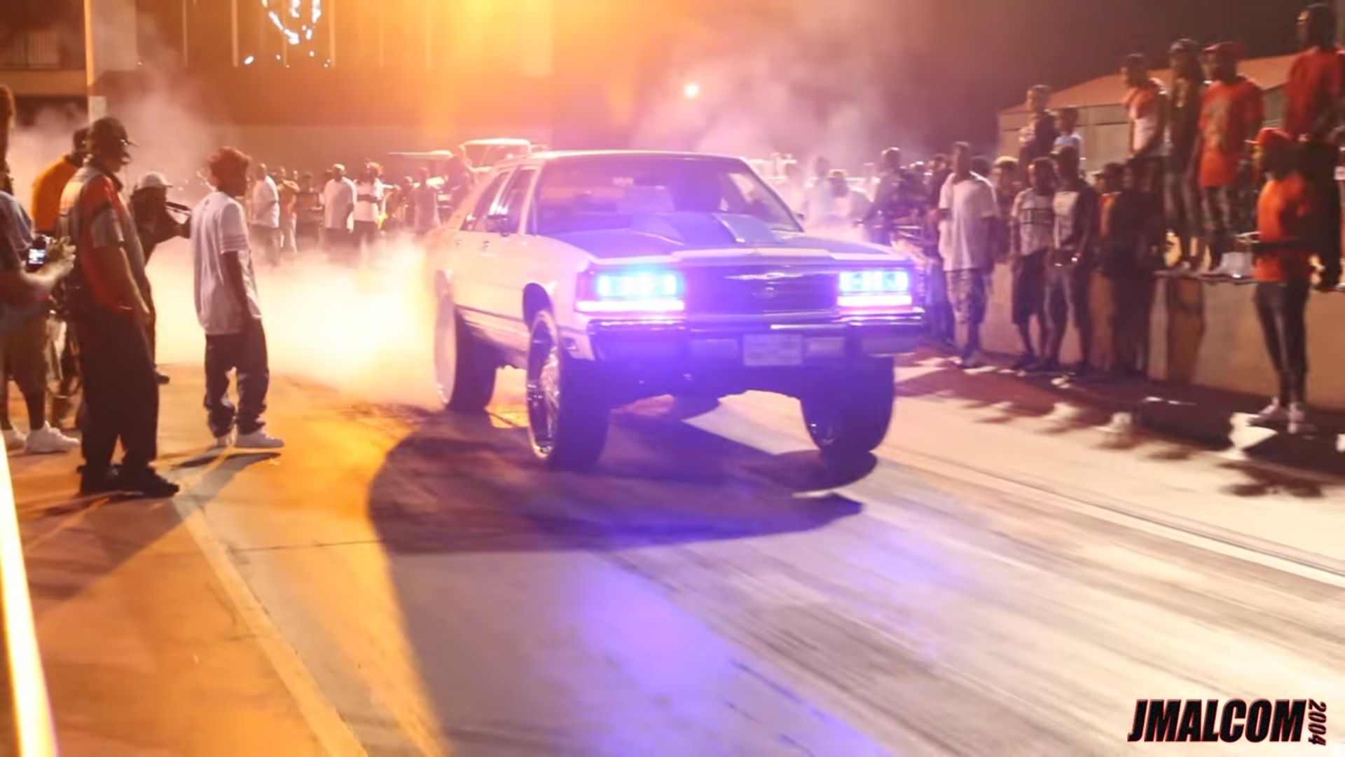 It’s not every day you see a late-1980s Ford Crown Victoria LTD roll up to the line on 30-inch chrome rims rocking a flamboyant Family Guy-themed paint job. And lest you think it’s all for show, the owner immediately lays down a tasty pre-run burnout as if to say “yes, we are doing this.” By the sounds of it, the standard anemic 4.9L V8 has either been scrapped for something entirely more sinister—not to mention the addition of nitrous.