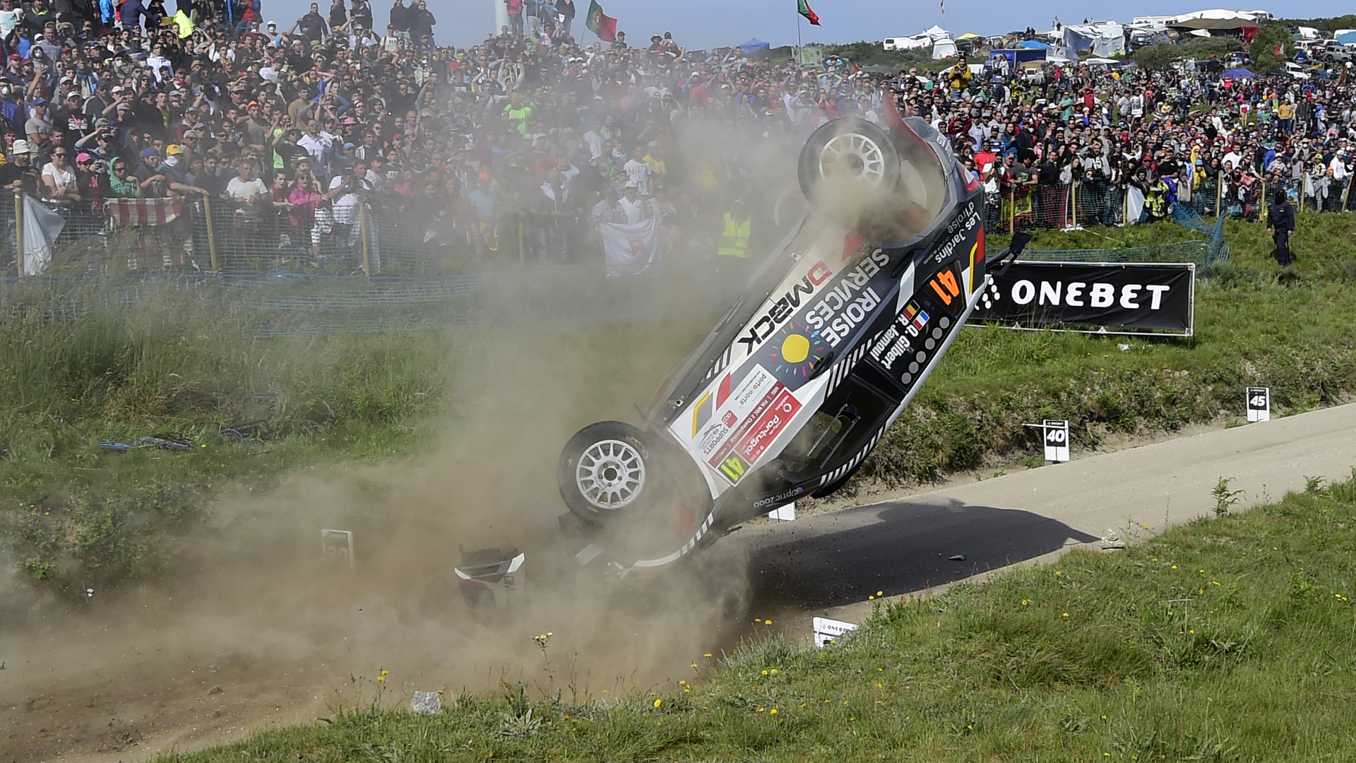 Gilbert and his co-driver Renaud Jamoul were on track for a podium finish as they neared the end of the 16th of 19 stages on Sunday. But first they’d have to take on the Fafe, a huge jump that has produced some of rally racing’s most iconic images. Its location just a hundred meters or so from the end actually gives drivers a glimpse of the finish line as they’re soaring through the air, and unfortunately that’s as close as Gilbert’s Skoda Fabia R5 would get.