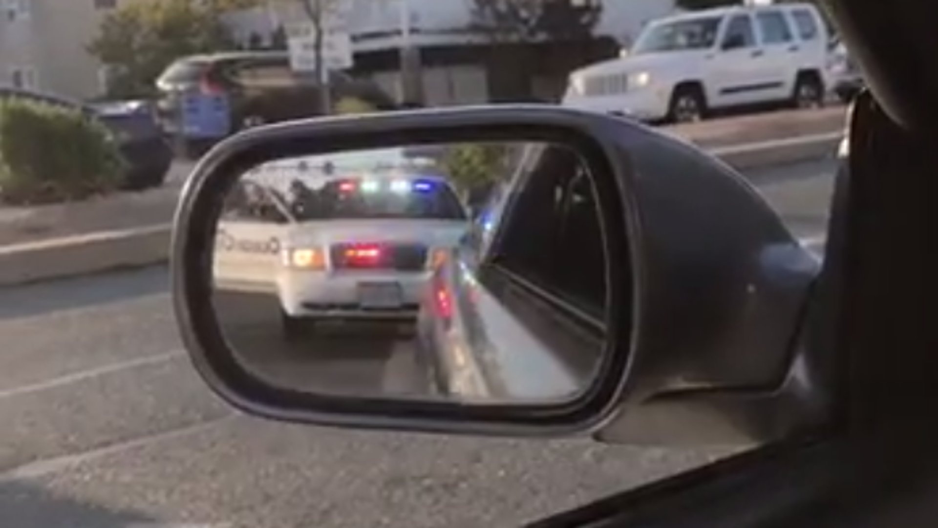 At 0:18, he finally lets off the gas, and the sound of screaming tires is immediately—and we mean immediately—replaced with the unmistakable wail of a police siren. A marked cruiser materializes through the smoke behind them, lights flashing away. “I’m going to jail for that one,” the driver says with a small hint of pride. “He’s definitely gonna handcuff me for that.”