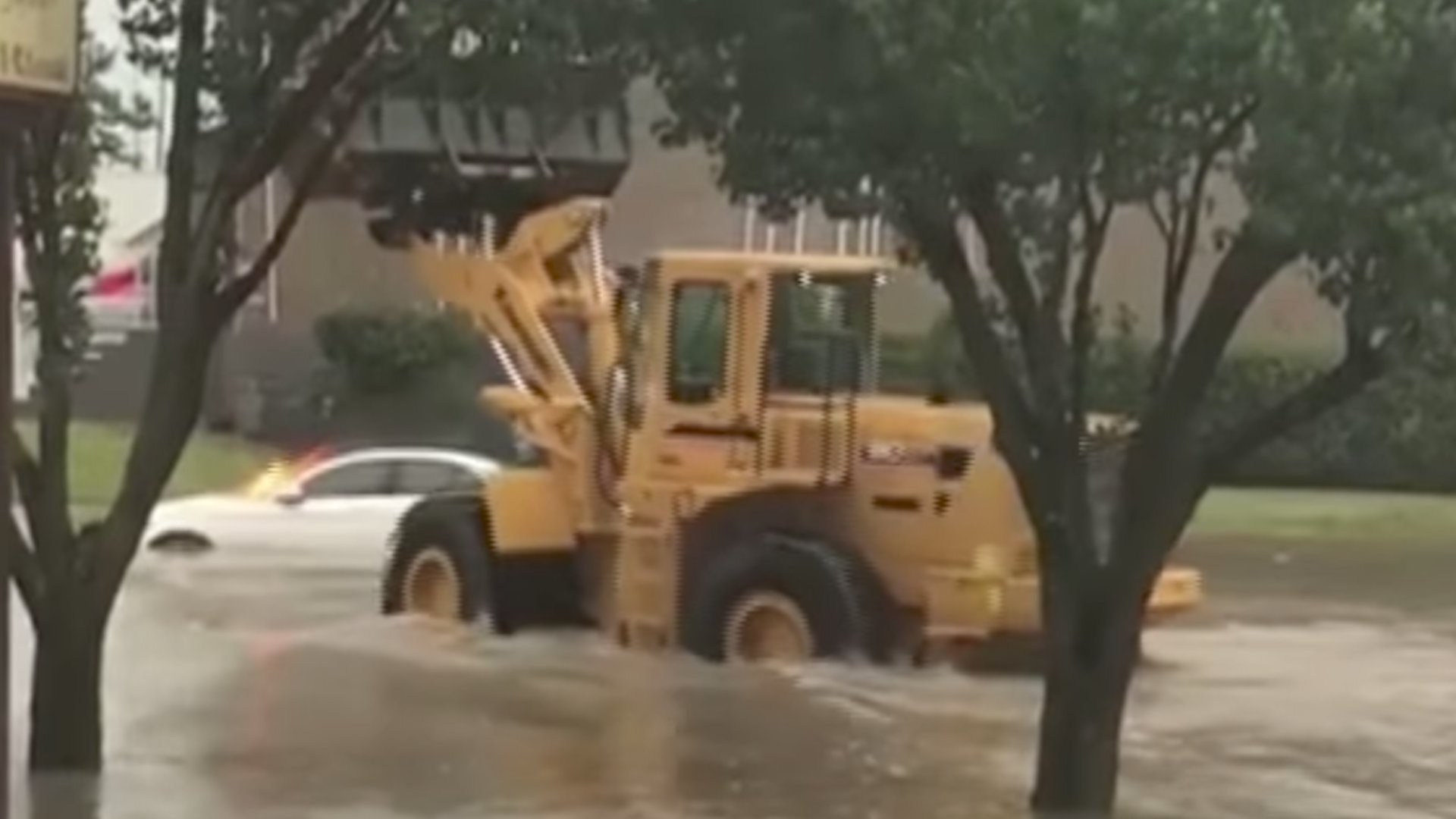 Nikki Carmona’s Mercedes-Benz began to smoke after it died on a flooded street, she explained to WFAA. Though Carmona managed to get out of the car, a fire grew inside the vehicle—until the general manager of nearby Bane Machinery showed up in a front-end loader and diffused the situation.